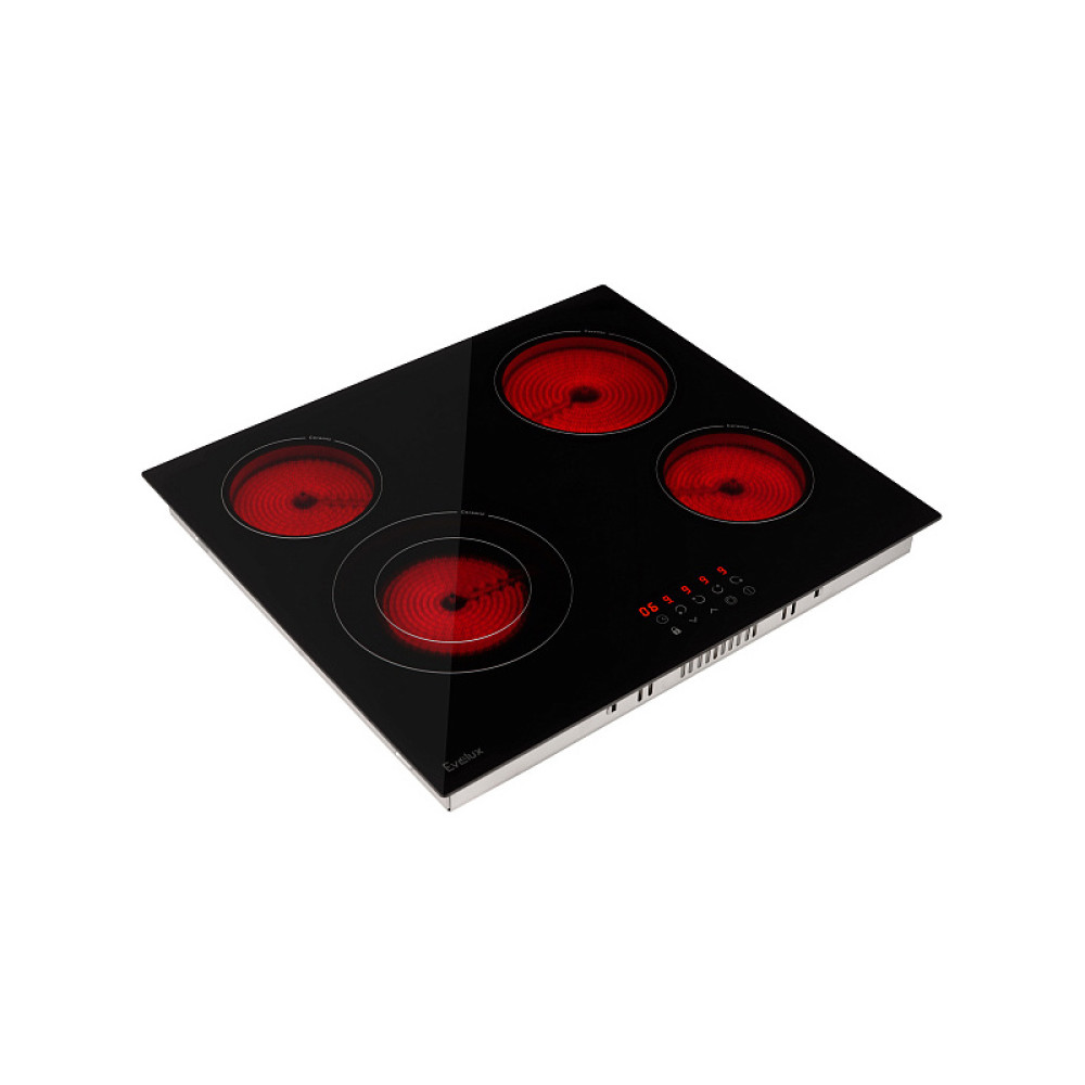 Зоны нагрева Evelux оборудованы современными нагревательными элементами Hi-light. Конфорка достигает установленной рабочей температуры буквально за считанные секунды, позволяет плавно регулировать мощность.