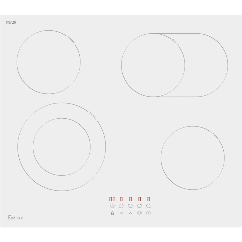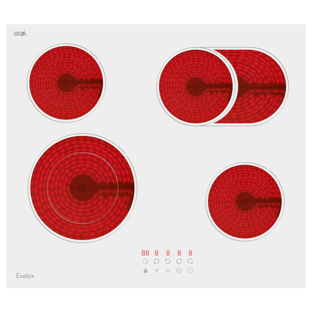 Встраиваемая электрическая варочная панель EVELUX HEV 642 W — это современное и стильное решение для вашей кухни, сочетающее в себе передовые технологии, надежность и эргономичный дизайн. Она создана для тех, кто ценит удобство, точный контроль в процессе готовки и безупречную эстетику. Модель оснащена четырьмя конфорками на поверхности из высококачественного белого стеклокерамического стекла, что позволяет легко вписать ее в любой кухонный интерьер.