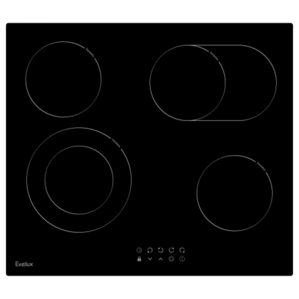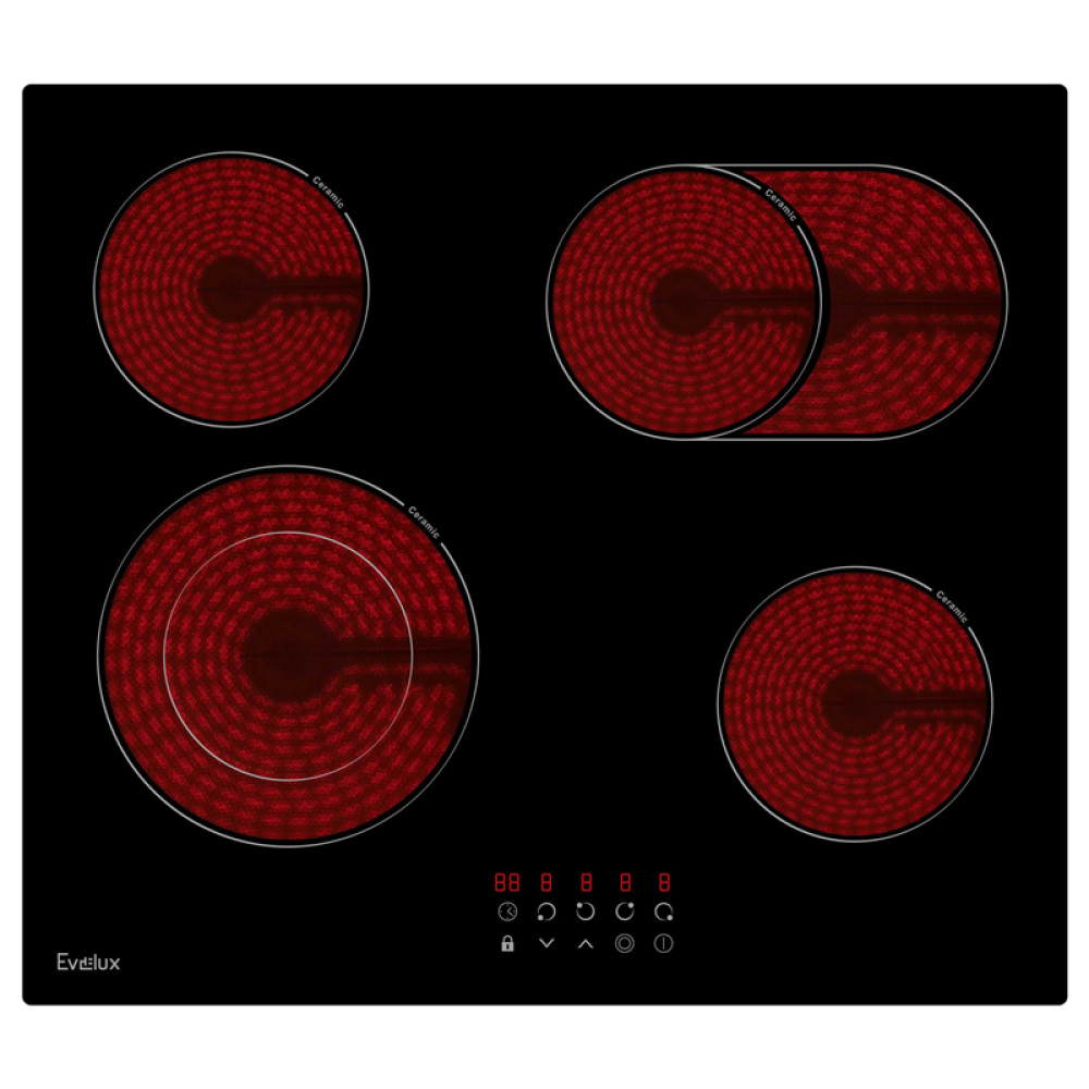 Зоны нагрева Evelux оборудованы современными нагревательными элементами Hi-light. Конфорка достигает установленной рабочей температуры буквально за считанные секунды, позволяет плавно регулировать мощность.