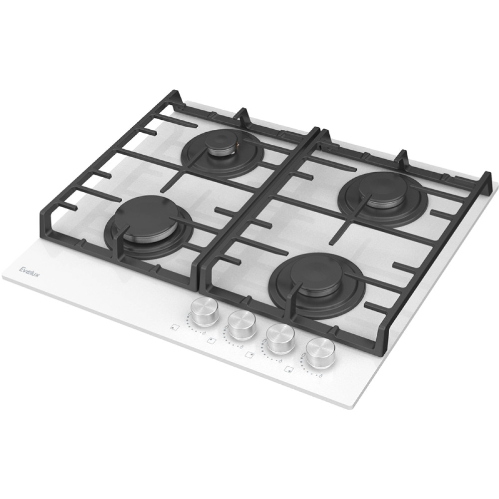 Поворотные регуляторы газовых варочных поверхностей Evelux выполнены из металла, что создает профессиональный стиль и препятствует их перегреву.