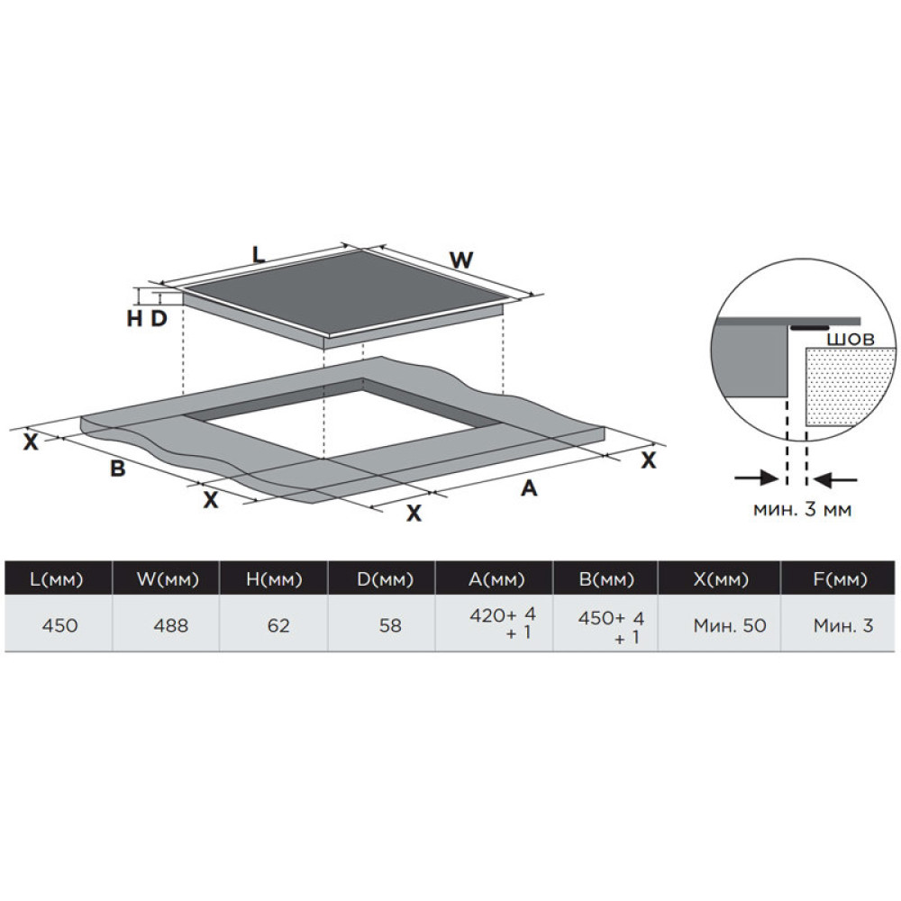 Варочная панель MIDEA/ MDK/Варочная панель MIDEA, индукция, 45 см, 3 зоны нагрева, Flex зона, Booster, слайдерное управление, 9 уровней мощности, таймер, индикация остаточного тепла, Inverter quattro, скошенные края, цвет черный