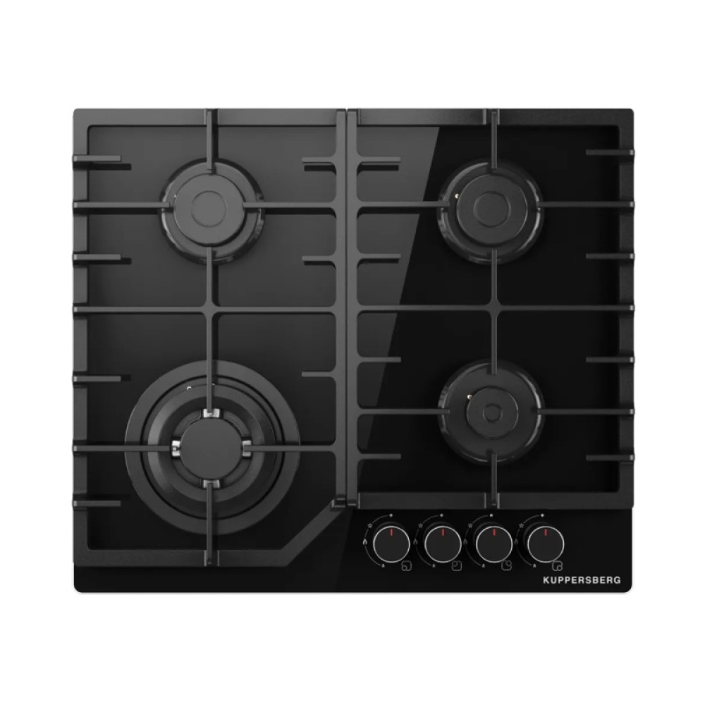 Варочная поверхность Kuppersberg/ Варочная поверхность Kuppersberg, газ, High-Tech, 59 см, автоматический электроподжиг, газ-контроль, форсунки под сжиженый газ, SABAF конфорки, чугунные решетки, цвет черный, цвет фурнитуры черный