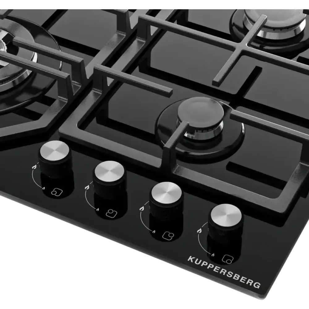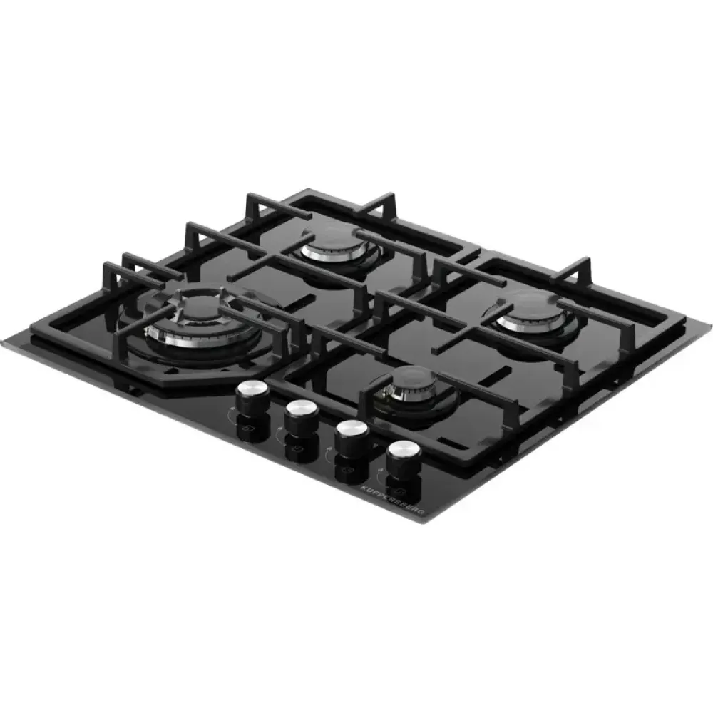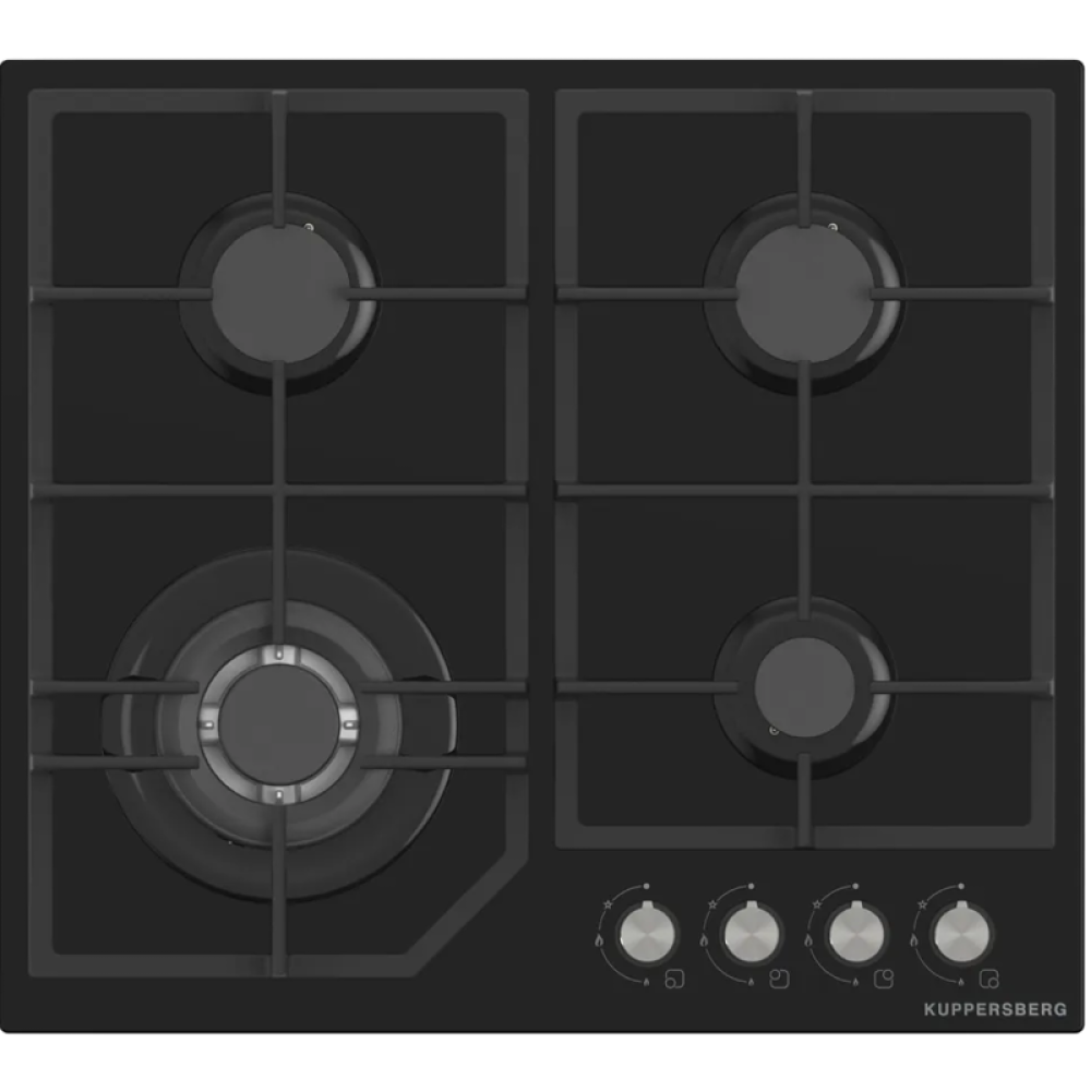 Варочная поверхность Kuppersberg/ Варочная поверхность Kuppersberg, газовая, High-Tech, 61 см, автоматический электроподжиг, газ-контроль, механическое управление, конфорки REMAY, цвет черный, цвет фурнитуры черный/нержавеющая сталь