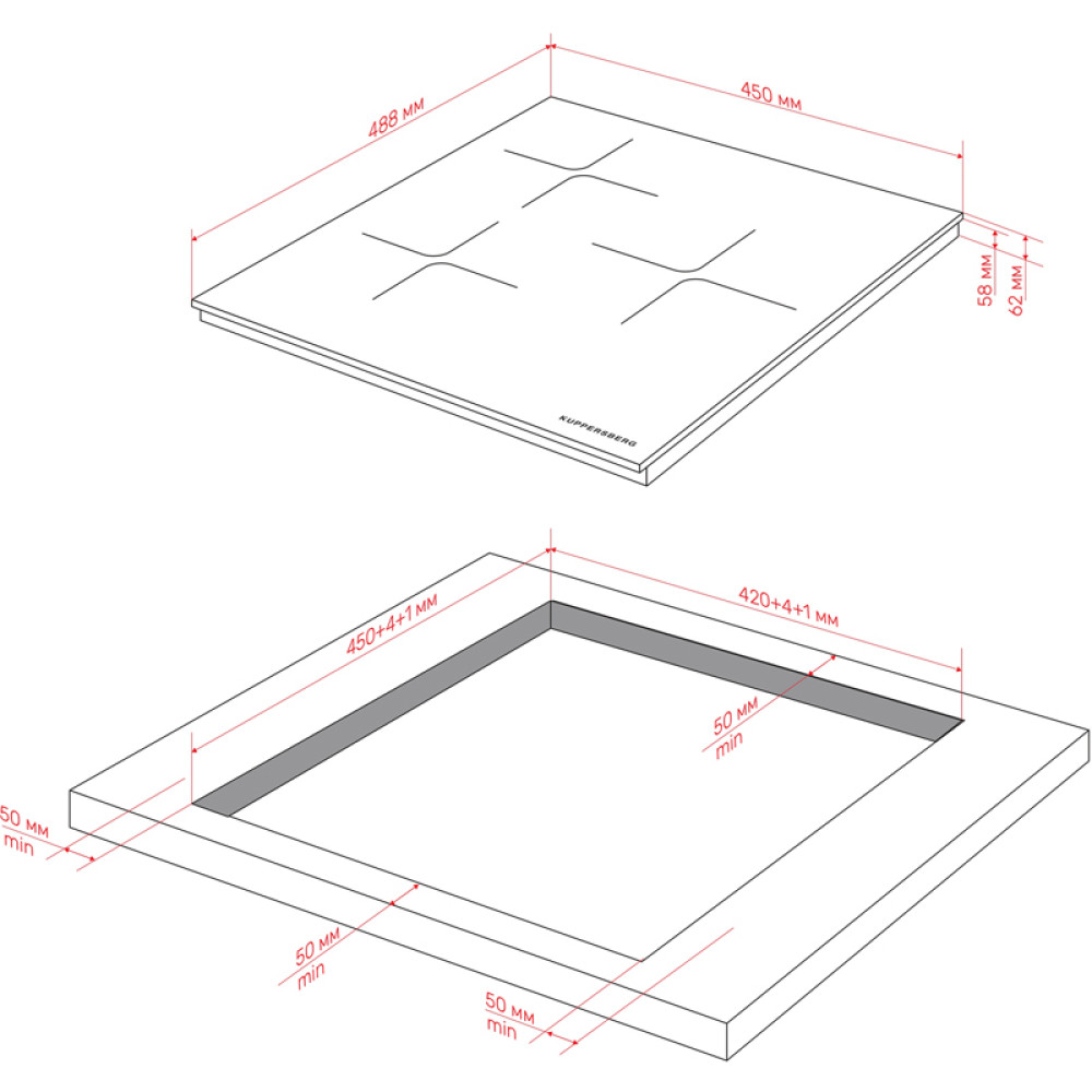 Варочная поверхность Kuppersberg/ Варочная поверхность Kuppersberg, индукция, High-Tech, 45 см, 9 уровней мощности, inverter, таймер, пауза, Booster, автоматическое отключение, сенсорное управление, автоматическое закипание, цвет черный