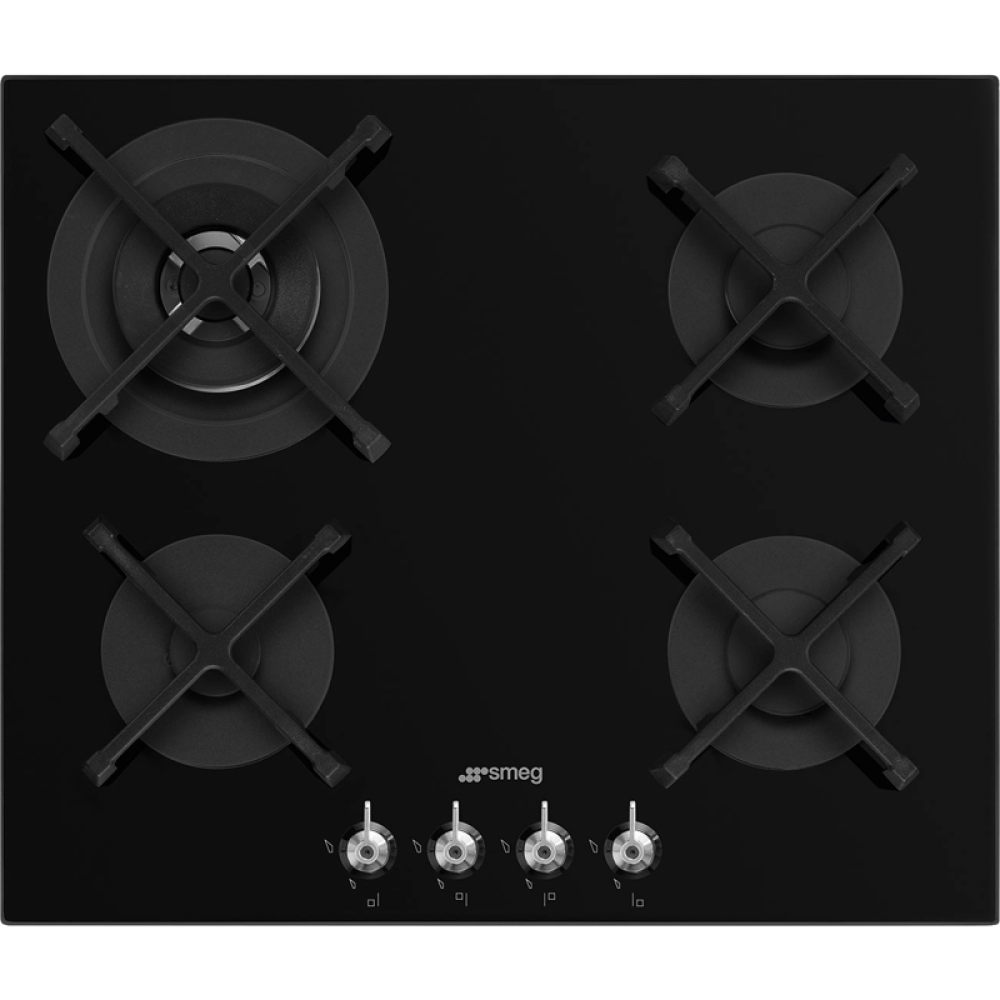 Варочная поверхность Smeg/ Газовая варочная поверхность, 60 см, Classica, прямой край, 4 конфорки, поворотные переключатели, газ-контроль, автоматический электроподжиг, чугунные решетки, цвет черный