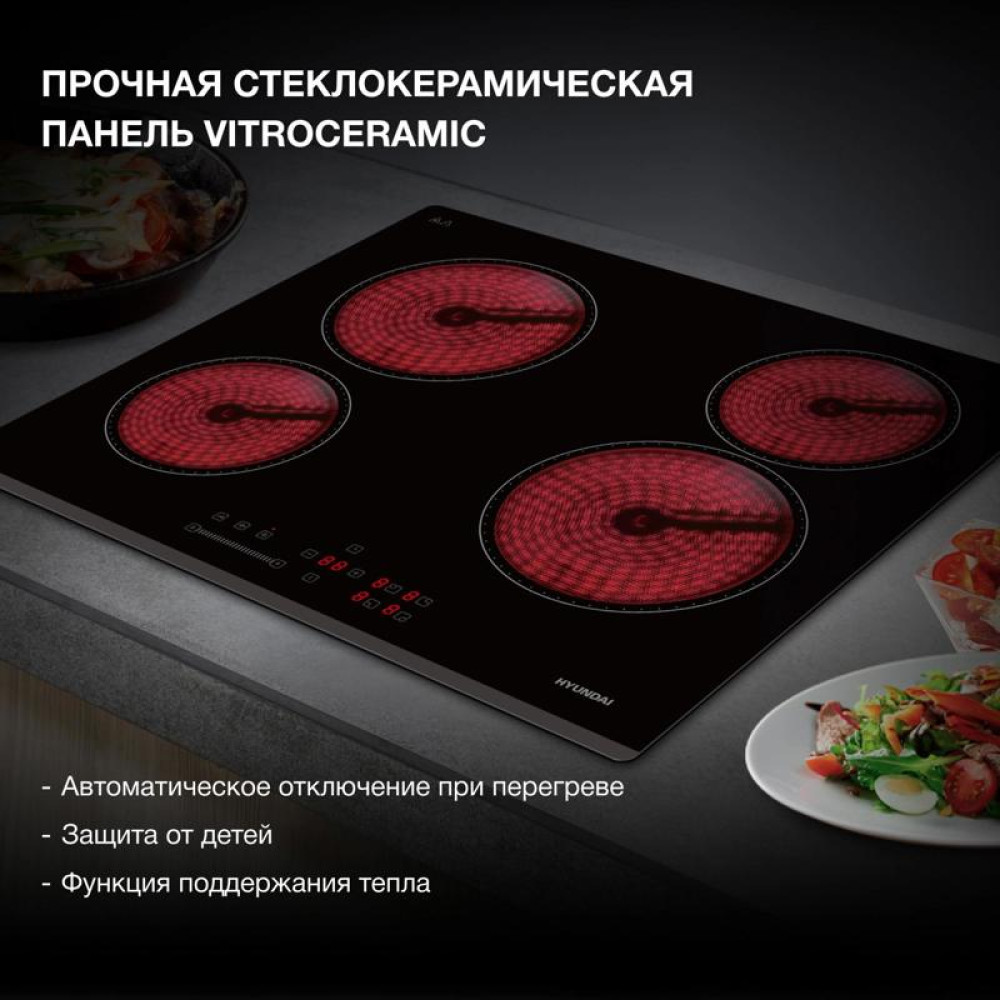 Варочная поверхность/ Варочная поверхность Hyundai HHE 6451 BG черный