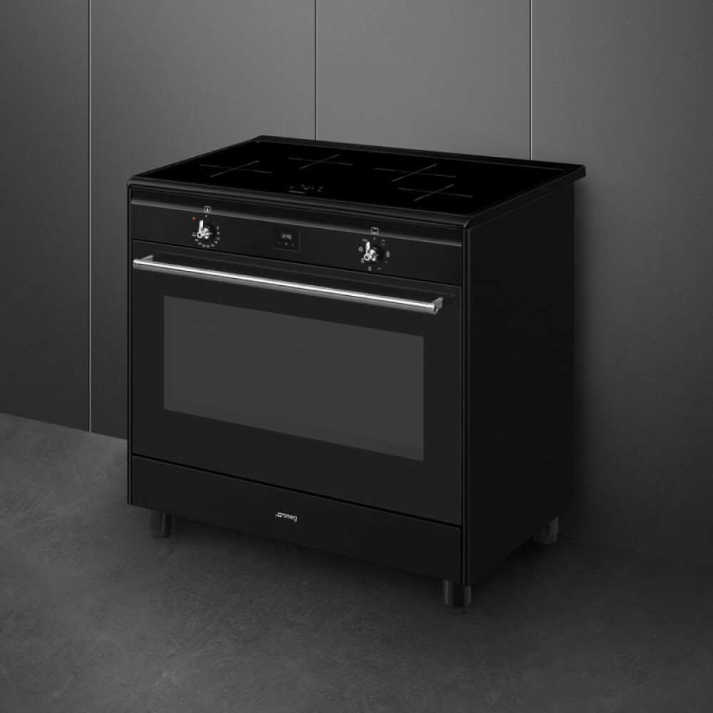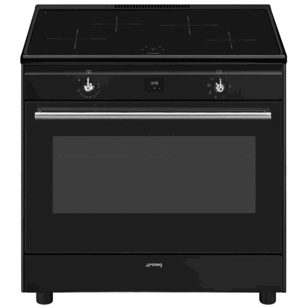 Варочный центр Smeg/ Варочный центр Smeg, Classica, серия Concerto, 90х60 см, индукционная варочная поверхность, электрическая духовка, 4 зоны нагрева, объем духовки 115 л, галогеновая подсветка, электромеханический контроль температуры, автоматическое оп