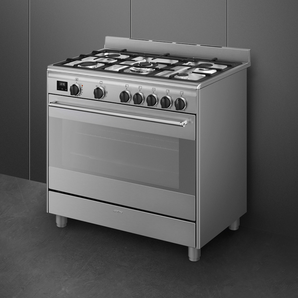 Варочный центр Smeg/ Варочный центр Smeg, Classica, серия Concerto, газовая варочная панель, комбинированное управление, таймер, акустический сигнал окончания приготовления, объем духовки 115 л, галогенное освещение, 3 стекла в дверце, энергоэффективность