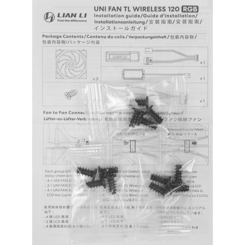 Вентилятор для корпуса Lian-Li Uni Fan TL Wireless 120 ARGB 120х120x28 черный 7-pin 33дБ (упак.:3шт) (G99.12TL1W3B.R0) Ret