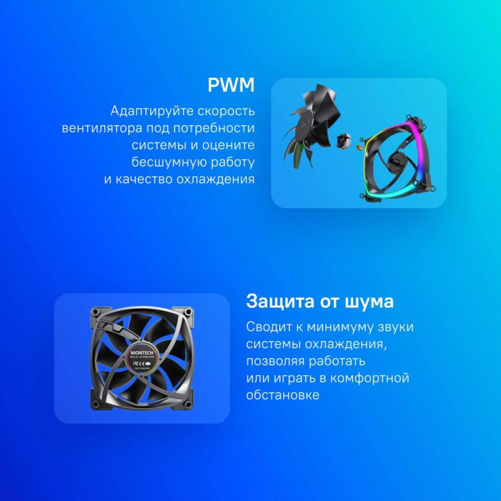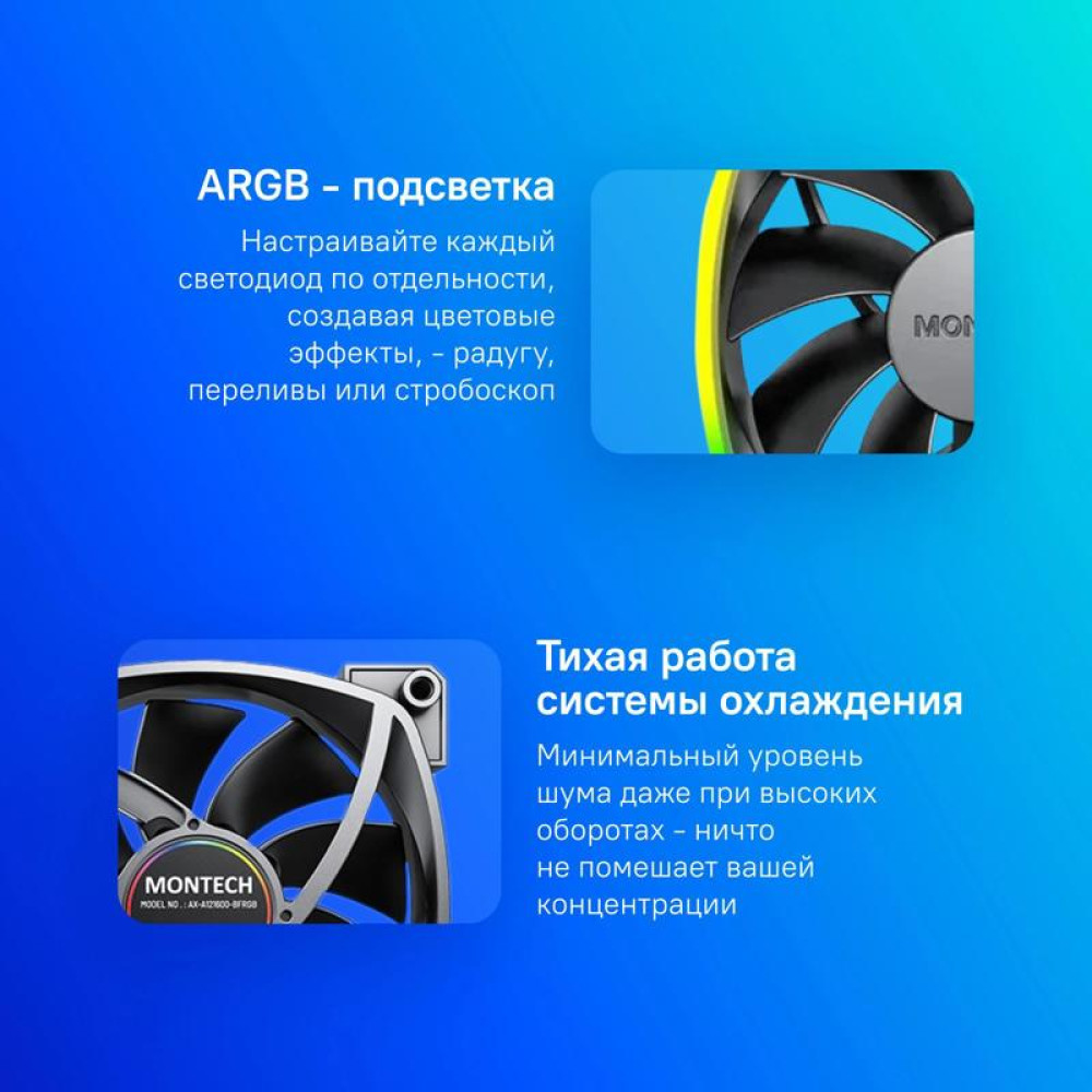 Вентилятор для корпуса Montech AX120 ARGB 120х120x25 черный 4-pin 27дБ (упак.:3шт) (AX120 PWM BLACK 3 IN 1) Ret [AX120 PWM BLACK 3 IN 1]