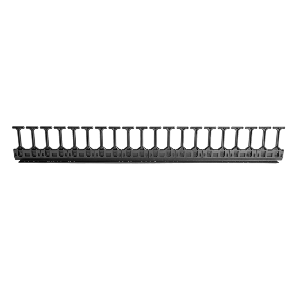 Вертикальный кабельный органайзер с Т-образными пластиковыми “пальцами” длиной 76,5 мм предназначен для удобной организации кабеля в шкафах серии ШТК-СП шириной 600 мм. Гладкие пластиковые штифты обеспечивают правильный радиус изгиба кабеля без его повреждения. Крепление изделия производится вертикально на передние или задние 19” юнитовые направляющие. Комплект поставки: органайзер 4 шт., винт резьбоформирующий M5x10 16 шт.