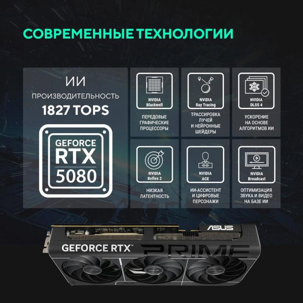 Видеокарта Asus PCI-E PRIME-RTX5080-O16G NVIDIA GeForce RTX 5080 16Gb 256bit GDDR7 2640/23000 HDMIx2 DPx3 HDCP Ret