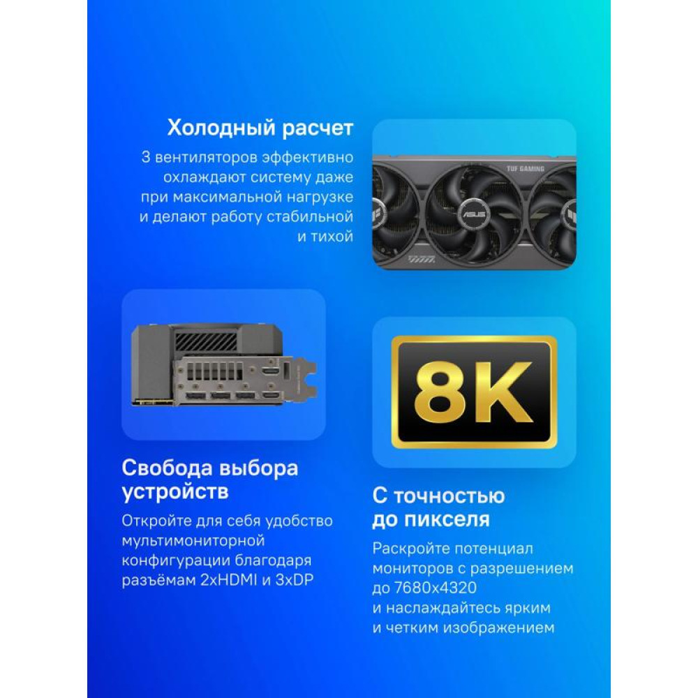 Видеокарта Asus PCI-E TUF-RTX5080-O16G-GAMING NVIDIA GeForce RTX 5080 16Gb 256bit GDDR7 2640/23000 HDMIx2 DPx3 HDCP Ret