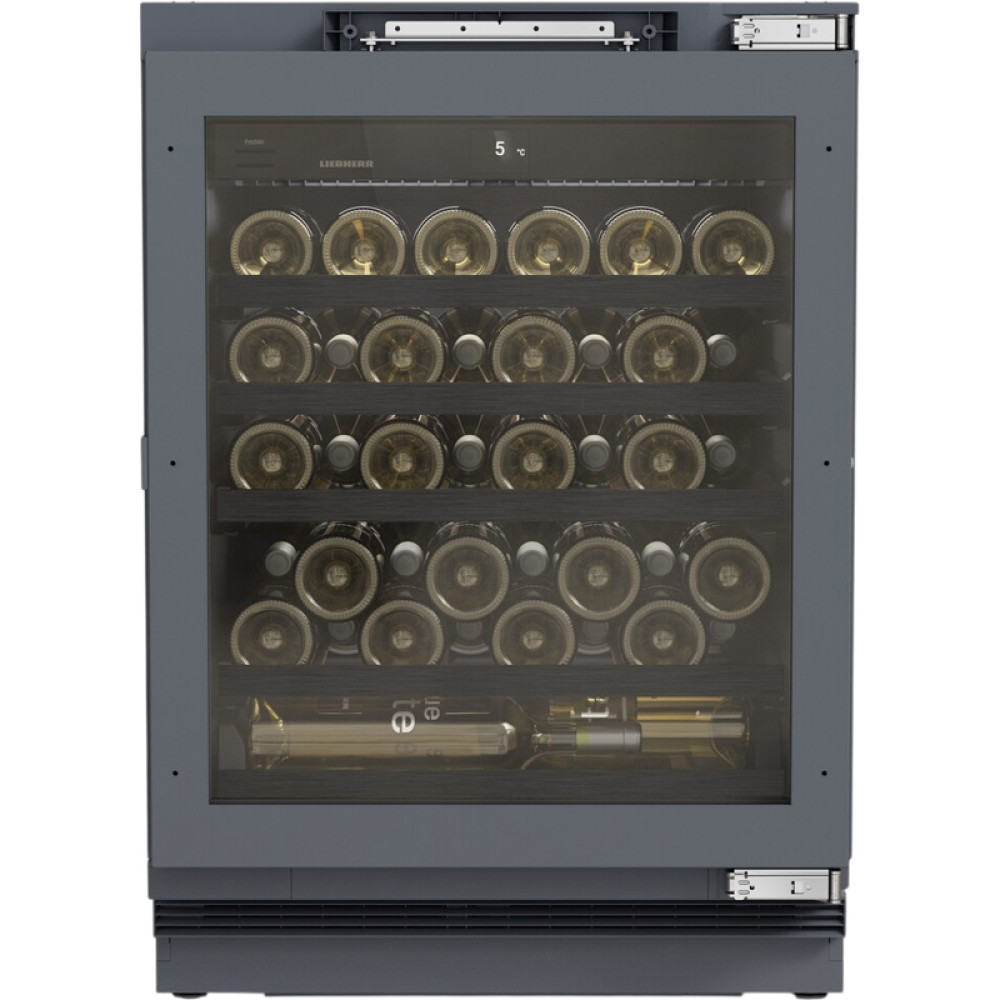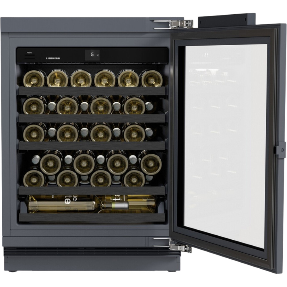 Встраиваемый винный шкаф Liebherr UWpri 3761-20 001 входит в линейку Vinidor Selection и позволяет хранить до 44 бутылок. Общий объем составляет 114 л.