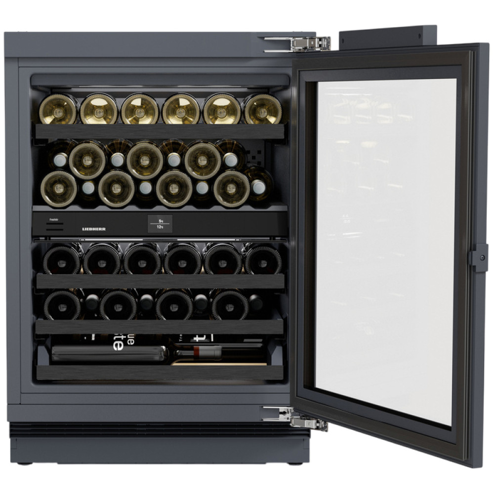 Встраиваемый винный шкаф Liebherr UWpri 3762-20 001 входит в линейку Vinidor Selection и позволяет хранить до 38 бутылок. Общий объем составляет 101 л.