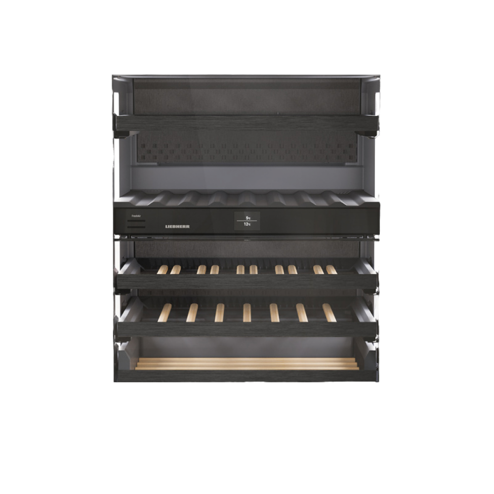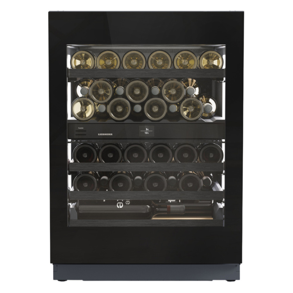 Винные шкафы Liebherr/ Vinidor Selection, высота 86-92 см, 2 темп. зоны, дверь стеклопакет, рамка двери GlassBlack, TipOpen, сенсорный дисплей Touch&Swipe. Важно: увеличенная высота встраивания: 86-92 см