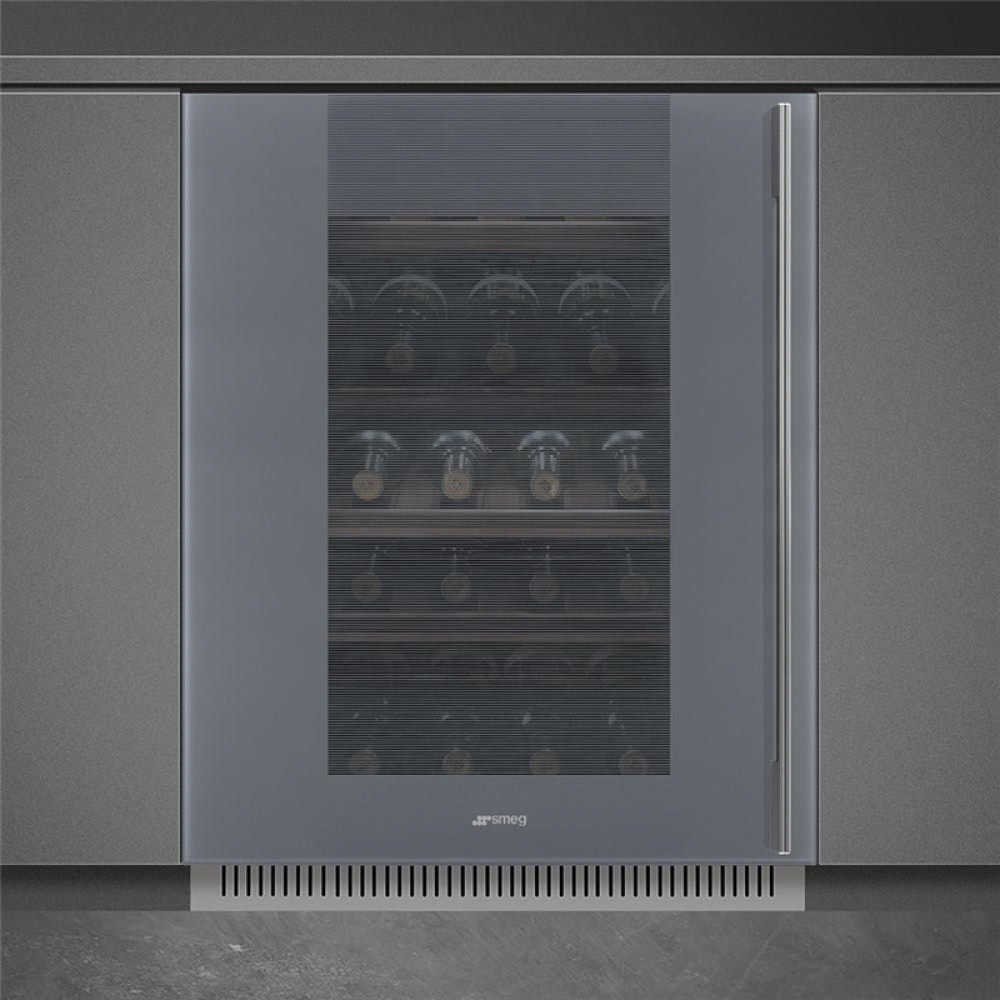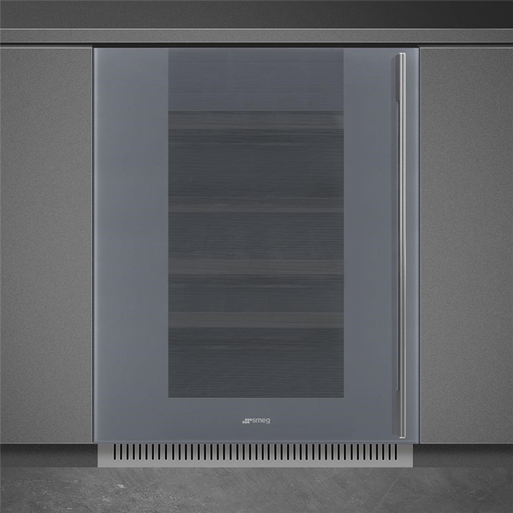 Винные шкафы SMEG/ Linea, Холодильный шкаф для вина встраиваемый, ВхШхГ 820х595х566 мм, петли слева, серебристое стекло Stopsol.