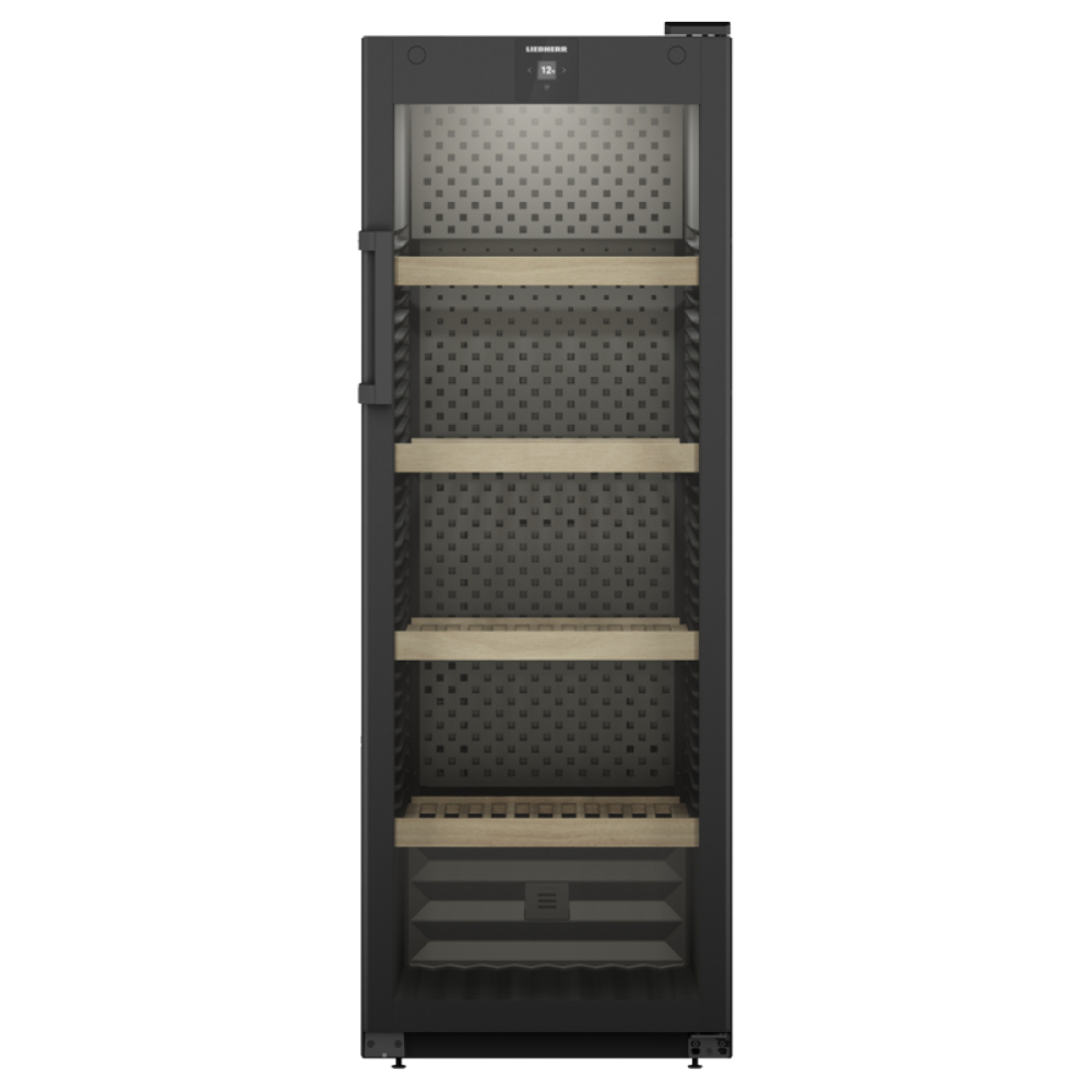 Винный шкаф LIEBHERR/ Серия GrandCru, дверь со стеклопакетом с защитой от УФ-излучения, в. 168,4 см, ш. 60 см, макс. кол-во бутылок Бордо (0,75 л): 196 бут., жесткая ручка, черный цвет