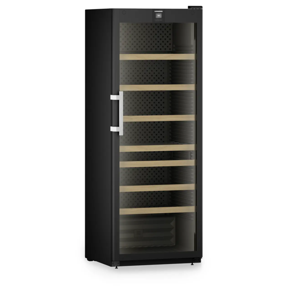 Винный шкаф LIEBHERR/ Серия Perfection, дверь со стеклопакетом с защитой от УФ-излучения, ручка с толкателем, электронный замок, в. 204,4 см, ш. 75 см, макс. кол-во бутылок Бордо (0,75 л): 284 бут., черный цвет