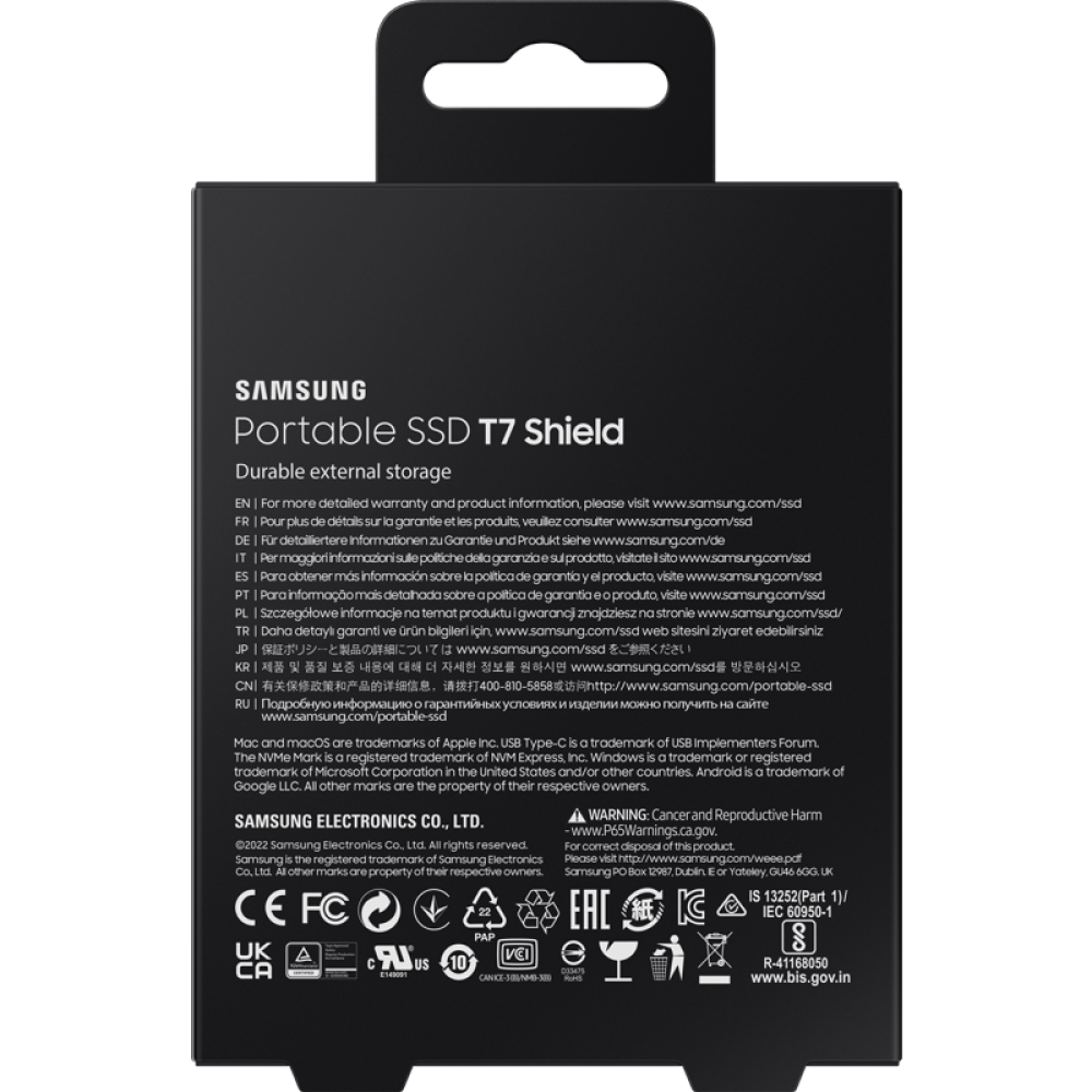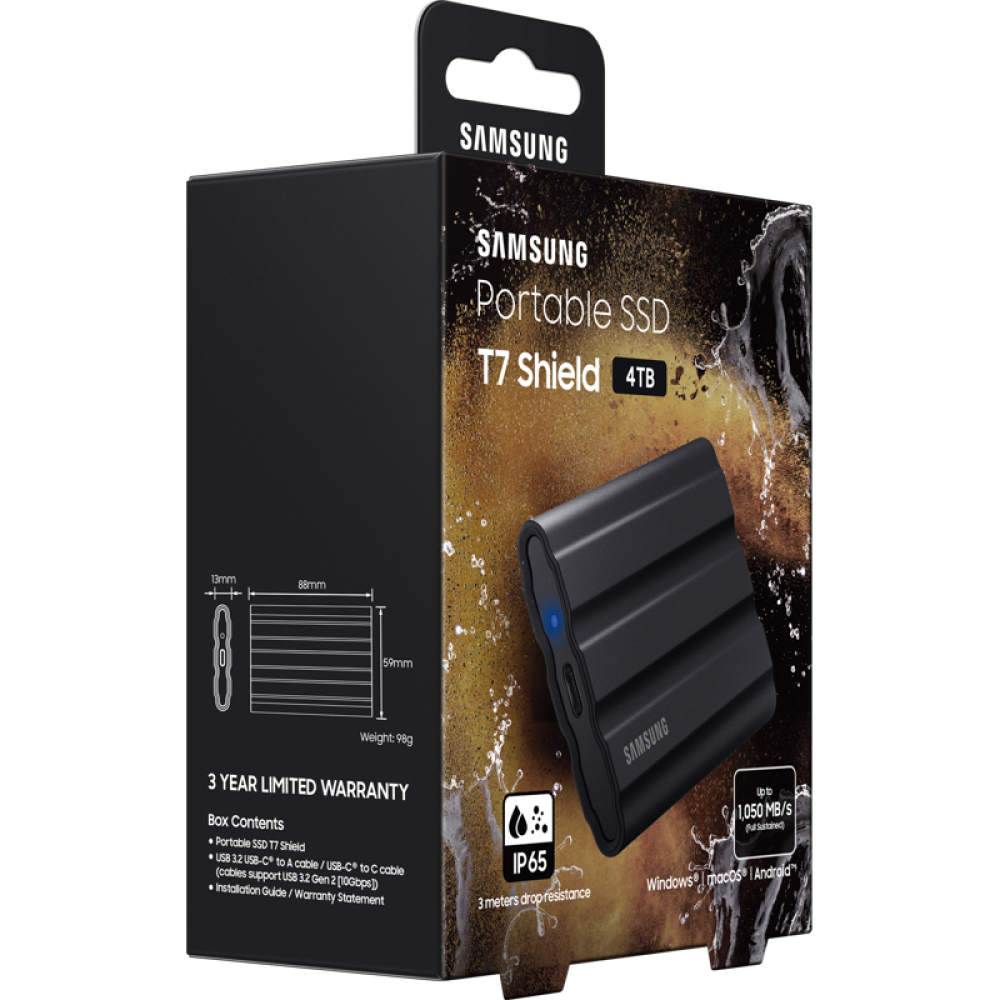 Внешние HDD и SSD Samsung External SSD T7 Shield, 4TB, Type C-to-C/A, USB 3.2 Gen2, R/W 1050/1000MB/s, IP65, 88x59x13mm, 98g, Black (12 мес.)