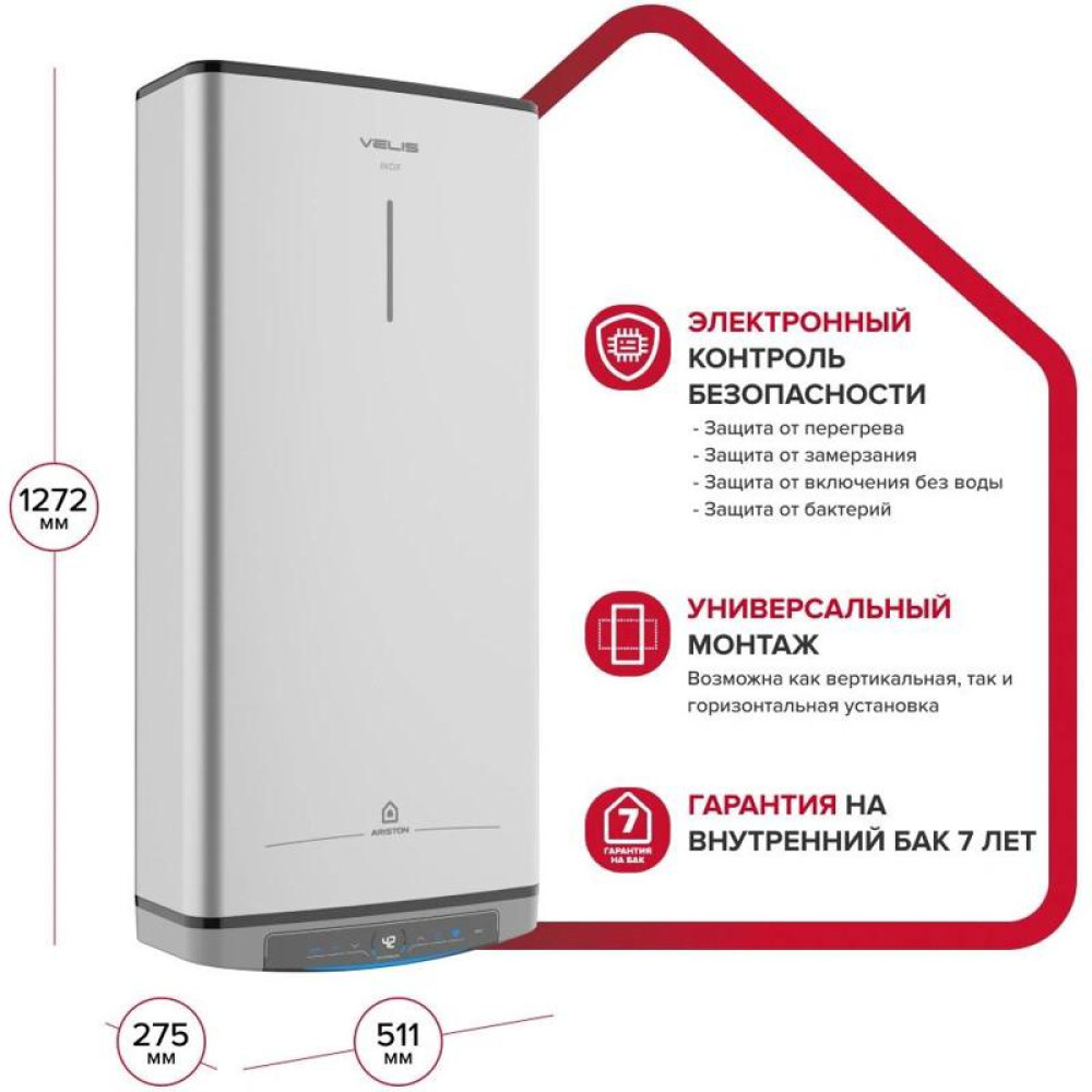 Водонагреватель Ariston Velis Lux Inox PW ABSE WIFI 100 2.5кВт 100л электрический настенный/серый