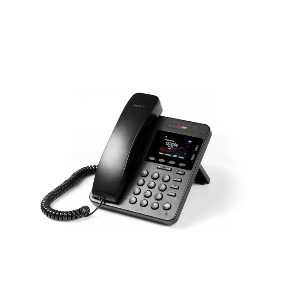 VoIP телефон/ VoIP телефон, 2 SIP линии, 25 клавиш, включая 5 программируемых, цветной графический дисплей с подсветкой 320*240, 2 порта Ethernet RJ-45 LAN/PC, разъем для гарнитуры RJ-9, поддержка PoE. (без блока питания в комплекте).