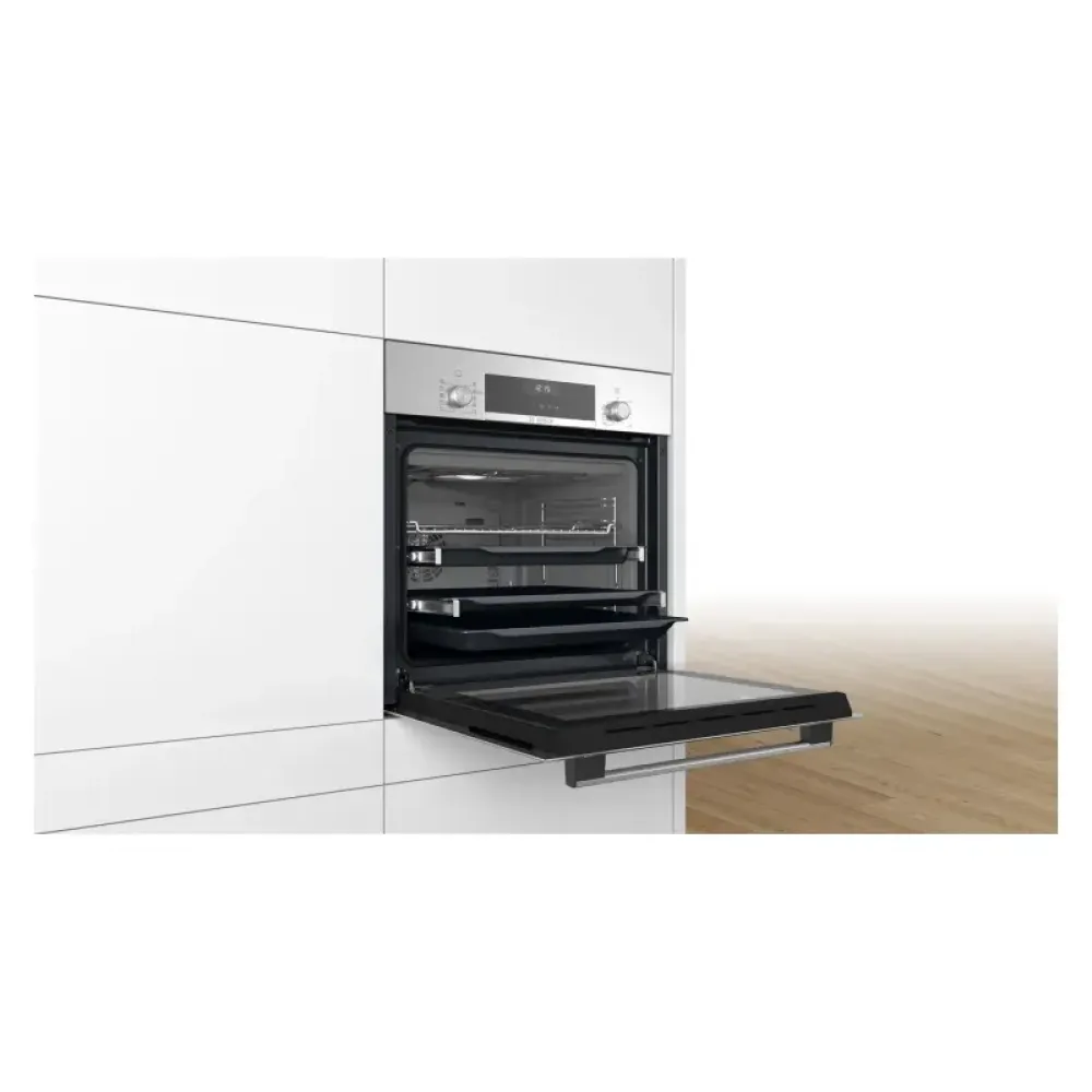 Встраиваемая электрическая духовка BOSCH/ Встраиваемая электрическая духовка BOSCH HBJ558YS3Q Serie 6, духовой шкаф электрический, 60 см, 66 л, нержавеющая сталь, класс энергоэффективности А, 8 режимов, LCD-дисплей, галогенное освещение, самоочистка EcoCl