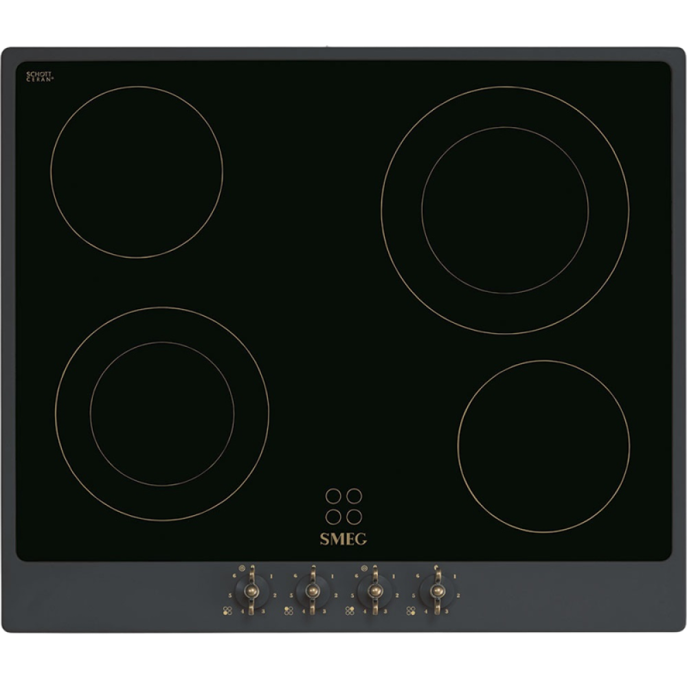 Встраиваемая электрическая панель SMEG/ Электрическая, Coloniale,стеклокерамическая варочная панель, 60 см,антрацит/фурнитура латунь