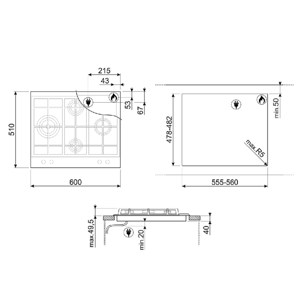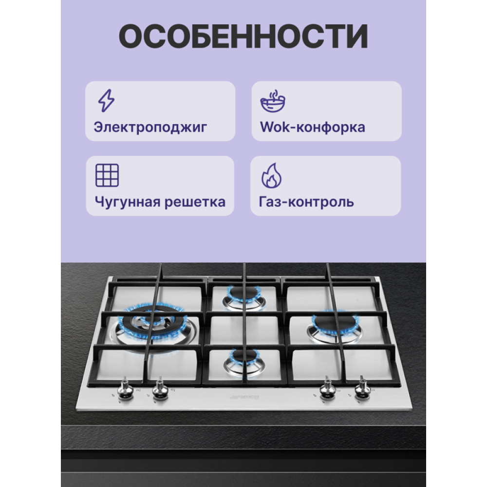 Встраиваемая газовая панель SMEG/ Газ, Classica,газовая варочная панель, 60 см,нержавеющая сталь