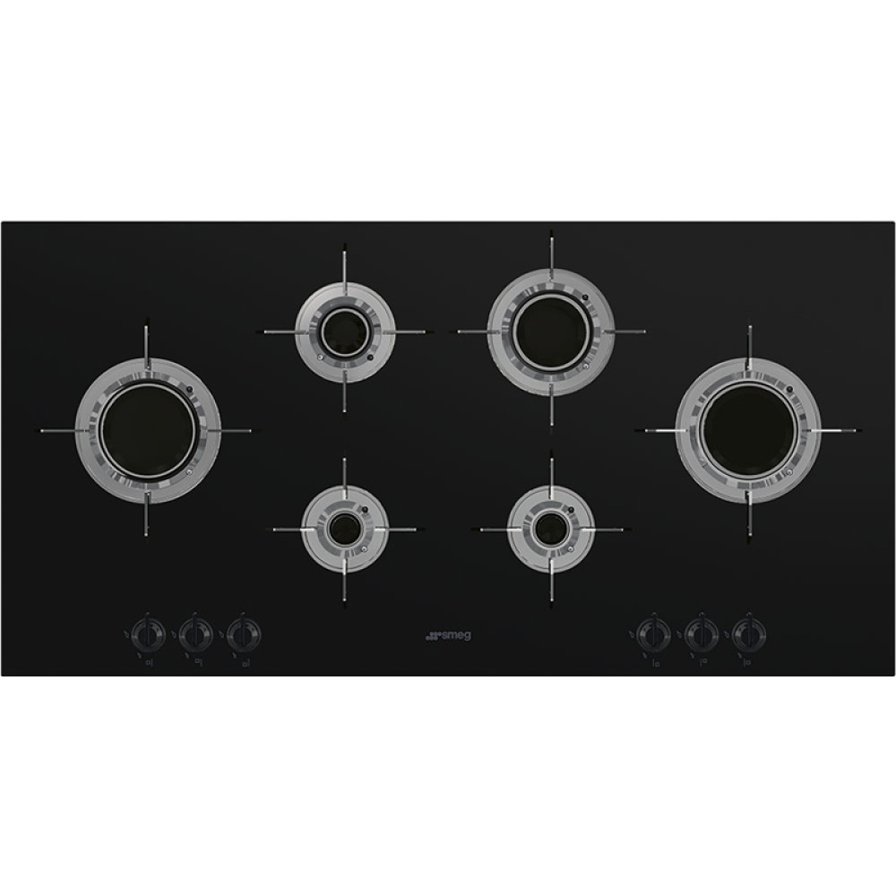 Встраиваемая газовая панель SMEG/ Газ, Dolce Stil Novo, Газовая варочная панель, 100 cм, черная стеклокерамика, прямой край
