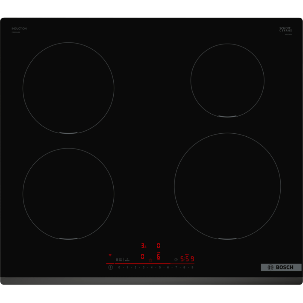 Встраиваемая индукционная панель BOSCH/ Встраиваемая индукционная панель BOSCH PIE631HB1E Индукционная, 60 см, индукция, скошенный край, сенсорное управление, черный