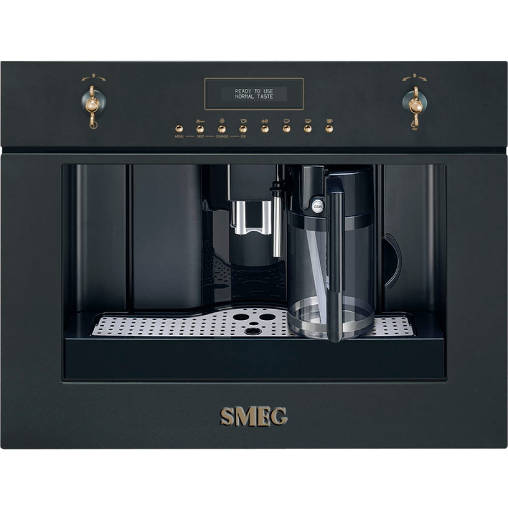 Встраиваемая кофемашина SMEG/ Coloniale, встраиваемая автоматическая кофемашина, цвет: антрацит, фурнитура позолоченная и латунная в комплекте