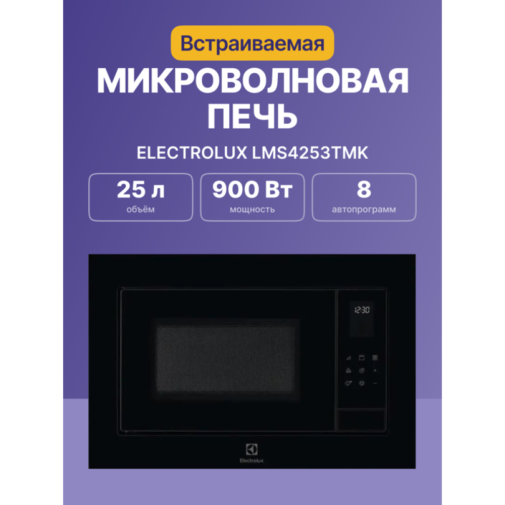 Встраиваемая микроволновая печь ELECTROLUX/ Встраиваемая микроволновая печь ELECTROLUX LMS4253TMK Микроволновая печь с грилем, объем 25 л., высота 390 мм, цвет черный