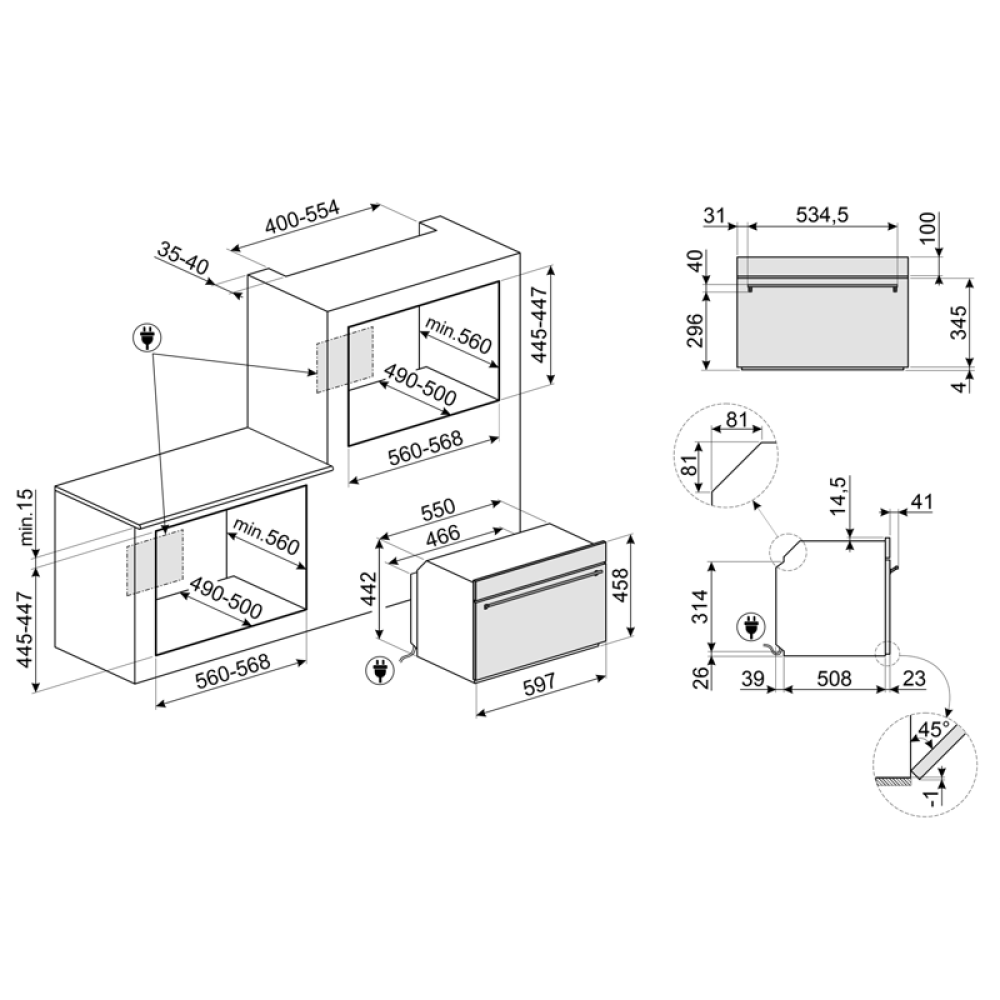 Встраиваемая микроволновая печь SMEG/ Встраиваемая микроволновая печь, 45 см, 40л., 4 функций, Цвет чёрный матовый, Черное стекло Eclipse