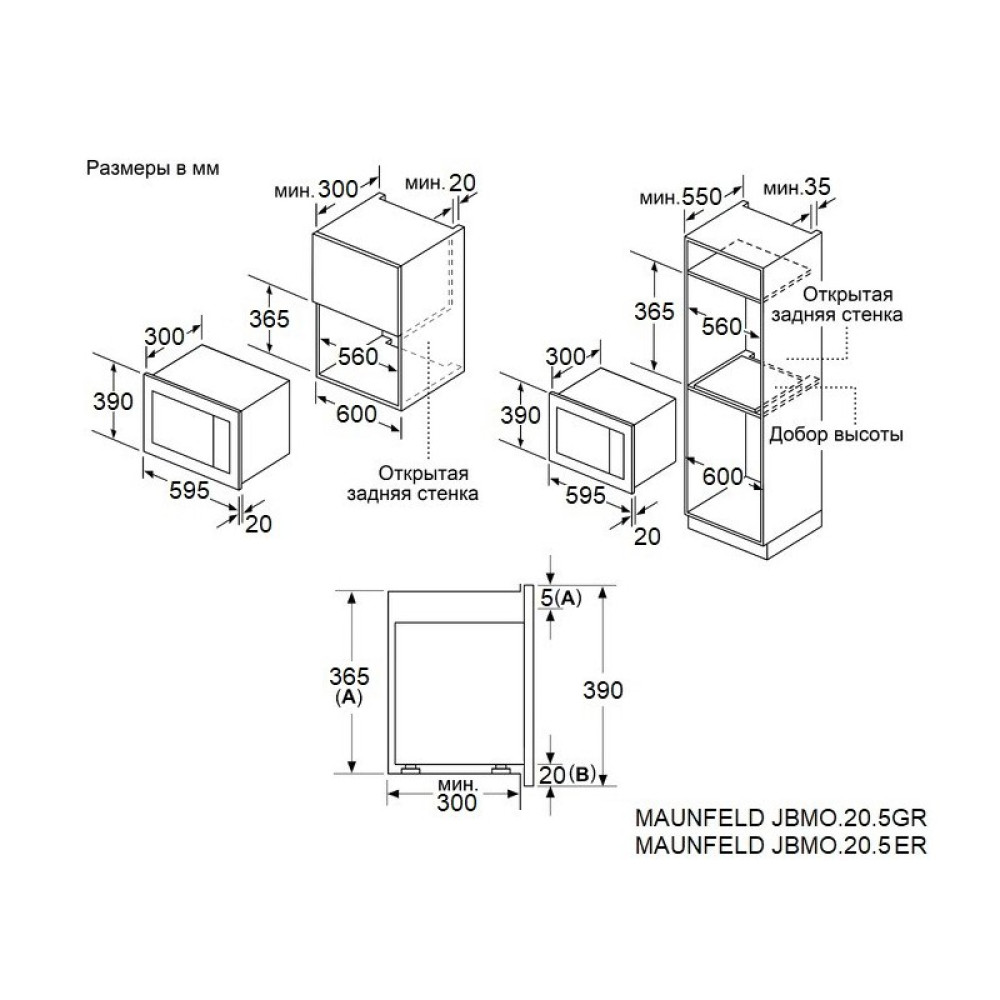 Встраиваемая микроволновая печь/ Встраиваемая микроволновая печь JBMO.20.5ERBG Микроволновая печь MAUNFELD JBMO.20.5ERBG, максимальная мощность 1080 Вт, полезный объем 20 л, кварцевый гриль, 8 режимов, без поворотного стола, таймер, цвет черный