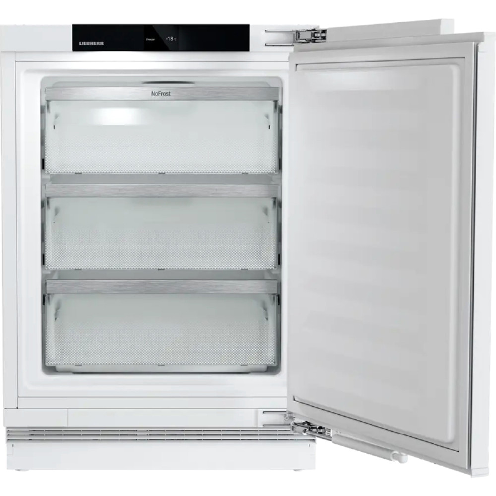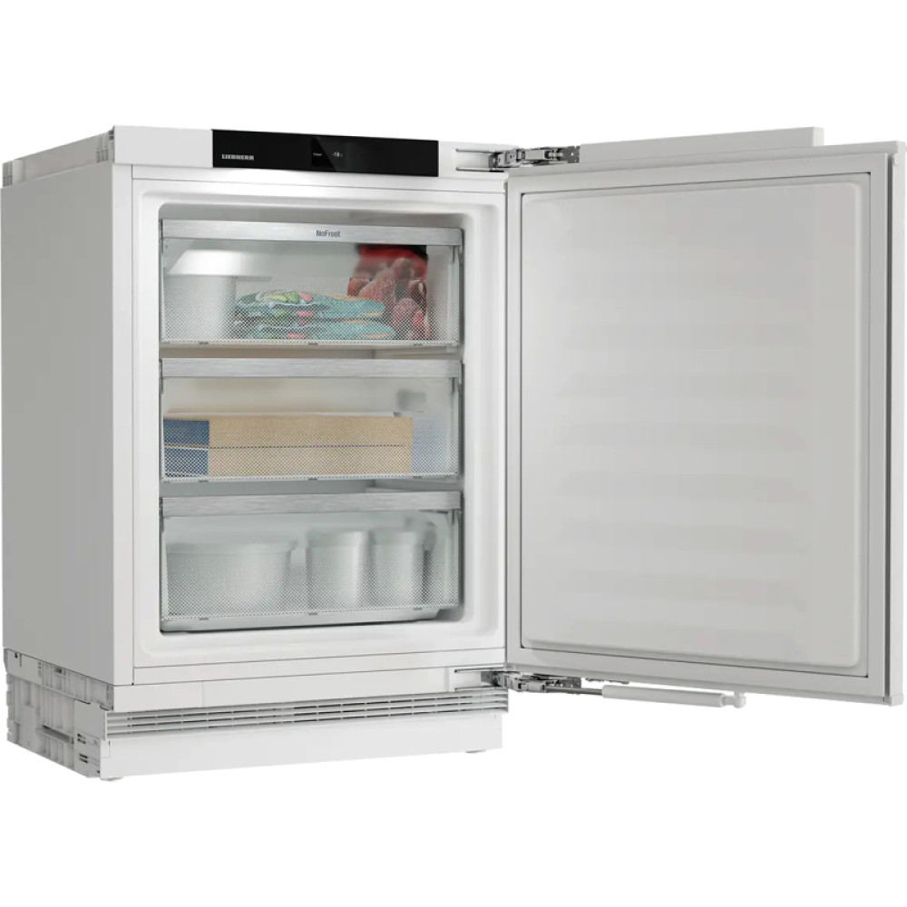 Морозильная камера Liebherr SUFNc 375i-20 001 Prime – модель встраиваемого типа, может быть установлена под столешницу. Для монтажа требуется ниша размерами 86-92 х 60 х 56,0 см. Максимально возможный вес фасадной двери – 10 кг, угол открывания – 115°. Общий объем прибора составляет 80 л, мощность замораживание составляет 9,7 кг в сутки. Технология No Frost избавляет от необходимости размораживать устройство.