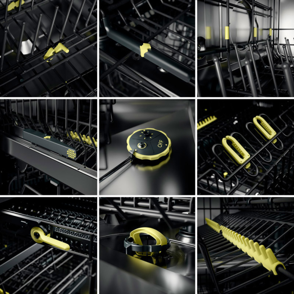 Благодаря складывающимся направляющим и полкам, а также съемным фиксаторам 4 лотка Exclusive вмещают до 17 комплектов посуды. Предусмотрены зоны усиленной мойки Power Zones и раздельная подача воды в средней корзине.