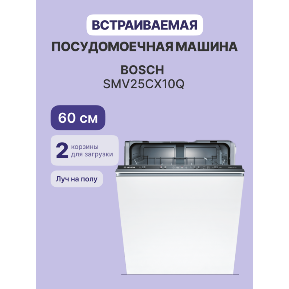 Посудомоечная машина Bosch SMV25CX10Q — это надежное и эффективное устройство, которое поможет вам сэкономить время и силы, затрачиваемые на мытье посуды.