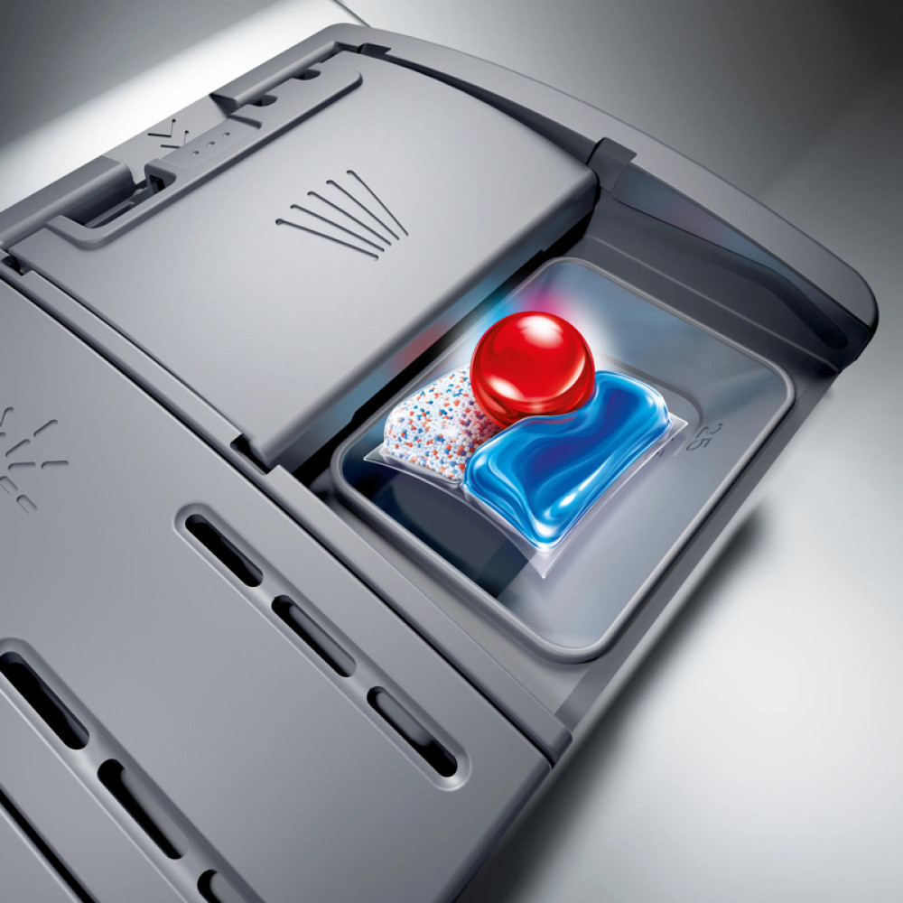 Узкая встраиваемая посудомоечная машинаМодель Bosch SPV6EMX76Q — оптимальный вариант для малогабаритной кухни. Ширина прибора — всего 44,8 см, поэтому он займет небольшое пространство в помещении. Для размещения посуды используются три корзины, высоту верхнего короба можно менять. Без потери эффективностиМашина рассчитана на единовременную загрузку до десяти комплектов посуды. В память устройства заложены шесть стандартных программ, четыре температурных режима. Среди них — «Автоматическая», «Быстрая», «Дополнительное полоскание». Предусмотрена функция HygienePlus — в конце цикла посуда дополнительно ополаскивается горячей водой. Управление без лишних хлопотДля выбора настроек машина оборудована закрытой сенсорной панелью. Информация об установленном режиме отображается на дисплее, время до завершения процесса дублируется лучом на полу. Индикаторы покажут наличие ополаскивателя и соли. В модель интегрирован таймер отложенного запуска, позволяющий начать мойку в удобное время сроком до 24 часов. Bosch SPV6EMX76Q можно синхронизировать со смартфоном, чтобы управлять настройками в приложении. БезопасностьВ машине реализована эффективная полная защита от протечек Aquastop. При возникновении аварийной ситуации подача воды автоматически блокируется, что предотвращает залив помещения. ЭкономичностьПосудомоечной машине Bosch SPV6EMX76Q присвоен высокий класс энергоэффективности А+++. За цикл она расходуется всего 9,5 л воды и минимальное количество электричества. За счет инверторного мотора во время работы устройства уровень шума составляет всего 45 дБ — соответствует звуку обычного разговора.