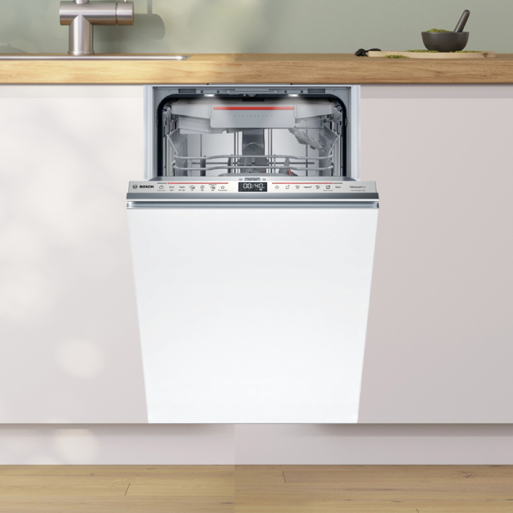 Встраиваемая посудомоечная машина Bosch/ Встраиваемая посудомоечная машина Bosch SPV6EMX76Q Встраиваемая посудомоечная машина Bosch, узкая, 10 комплектов, 10 программ, 6 температурных режимов, электронное управление, дисплей, Aquastop, конденсационная суш