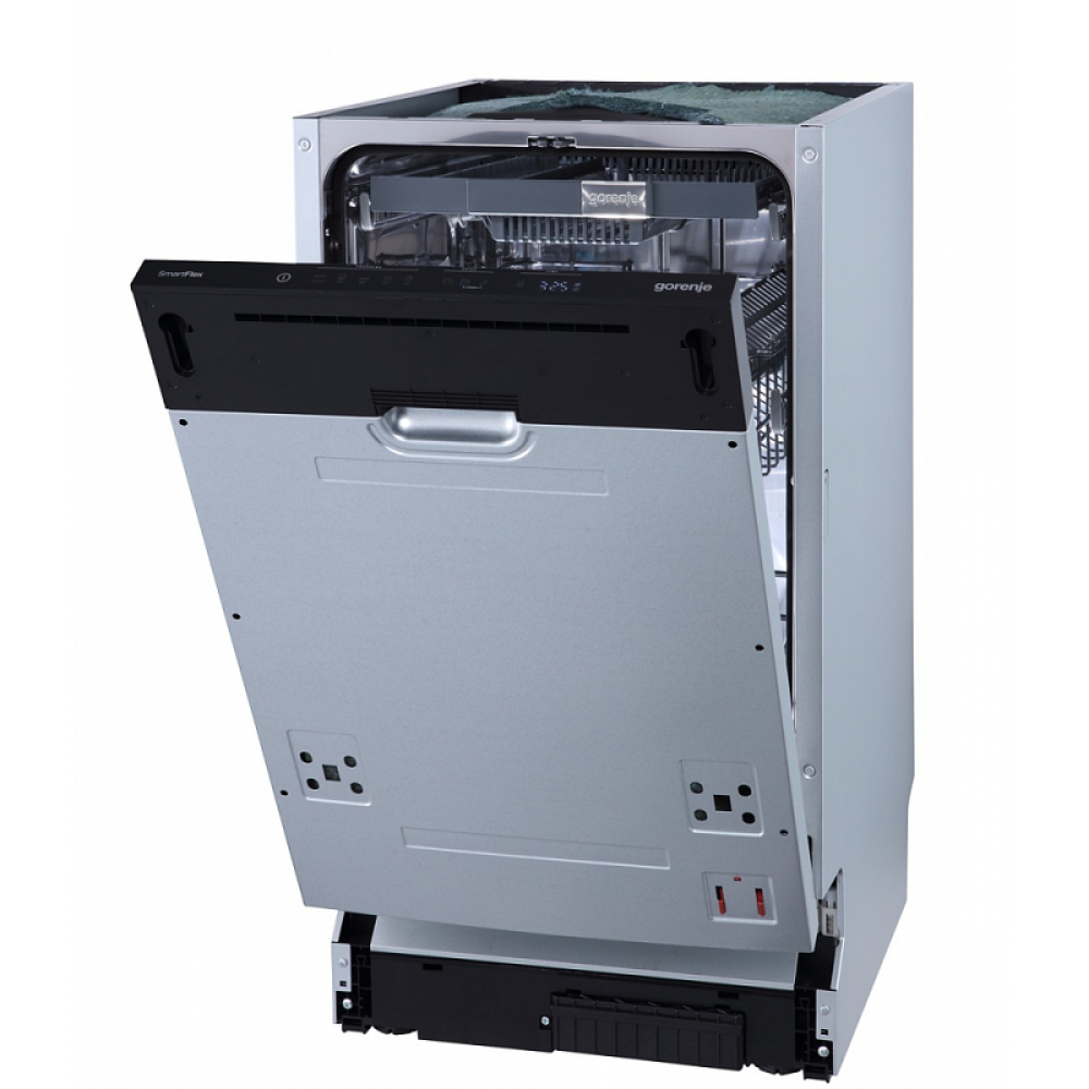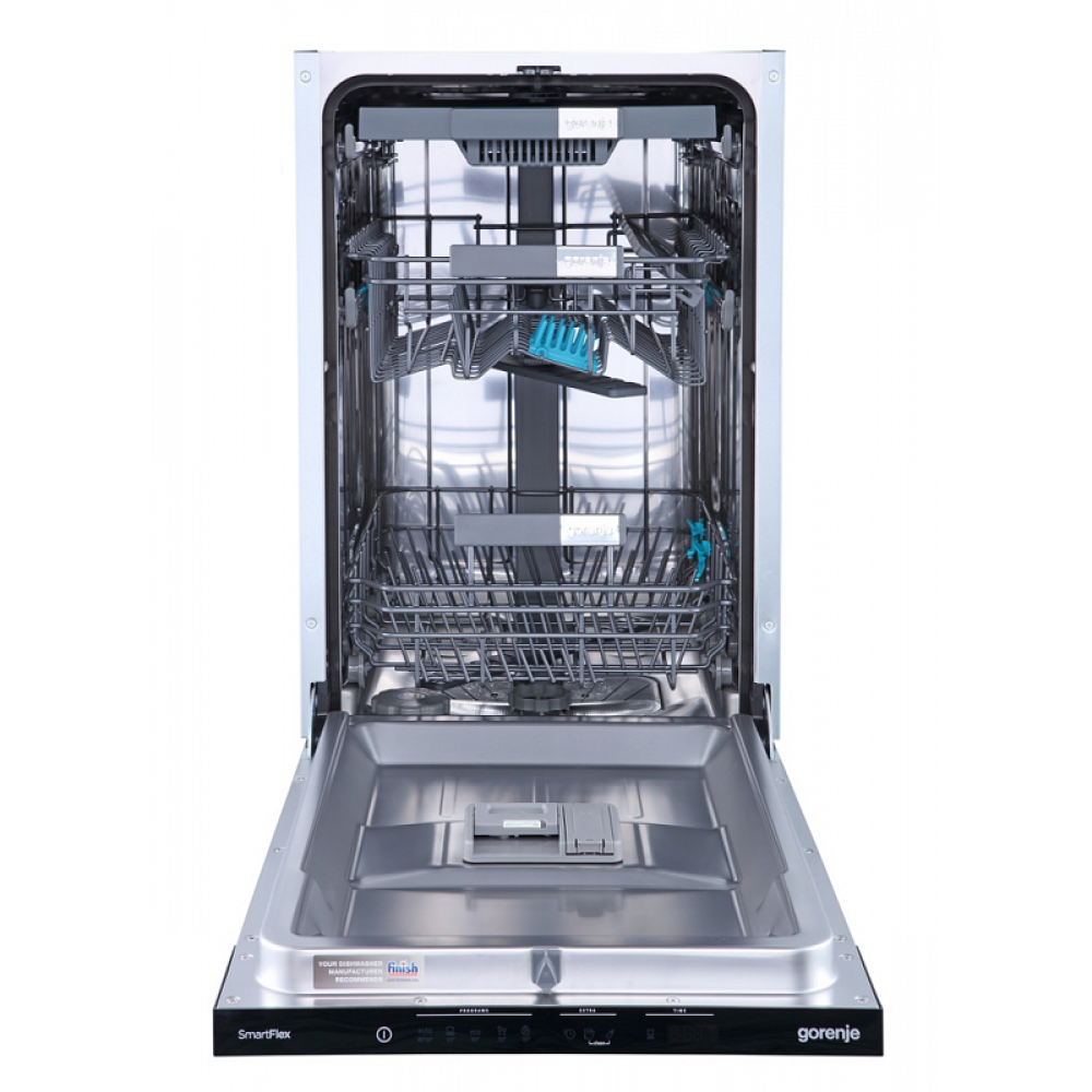Встраиваемая посудомоечная машина GORENJE/ встраиваемая, узкая, Класс энергопотребления: А+++ 11 стандартных комплектов посуды Количество корзин: 3 Полный AquaStop TotalDry: автоматическое открывание дверцы Мотор: Инверторный мотор Габаритные размер