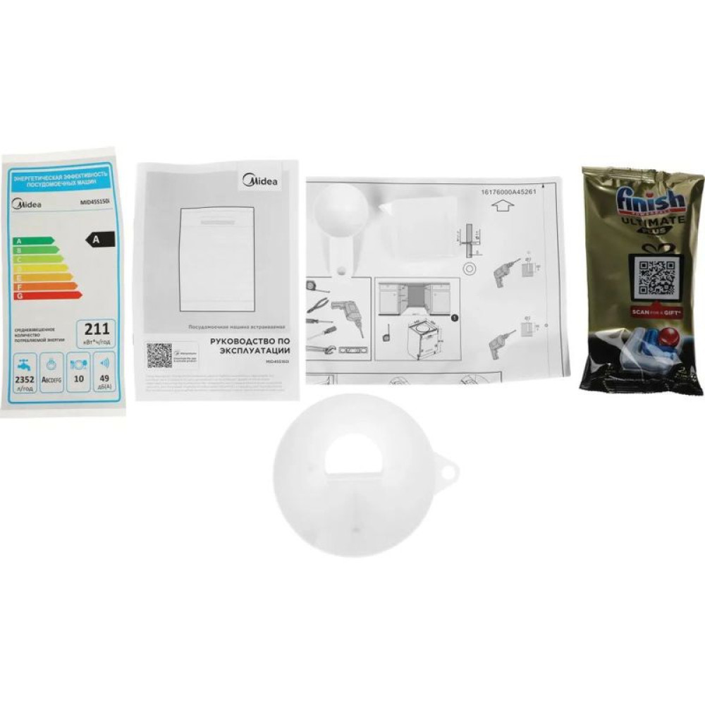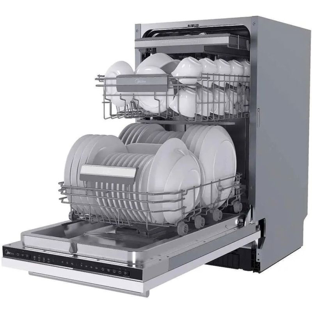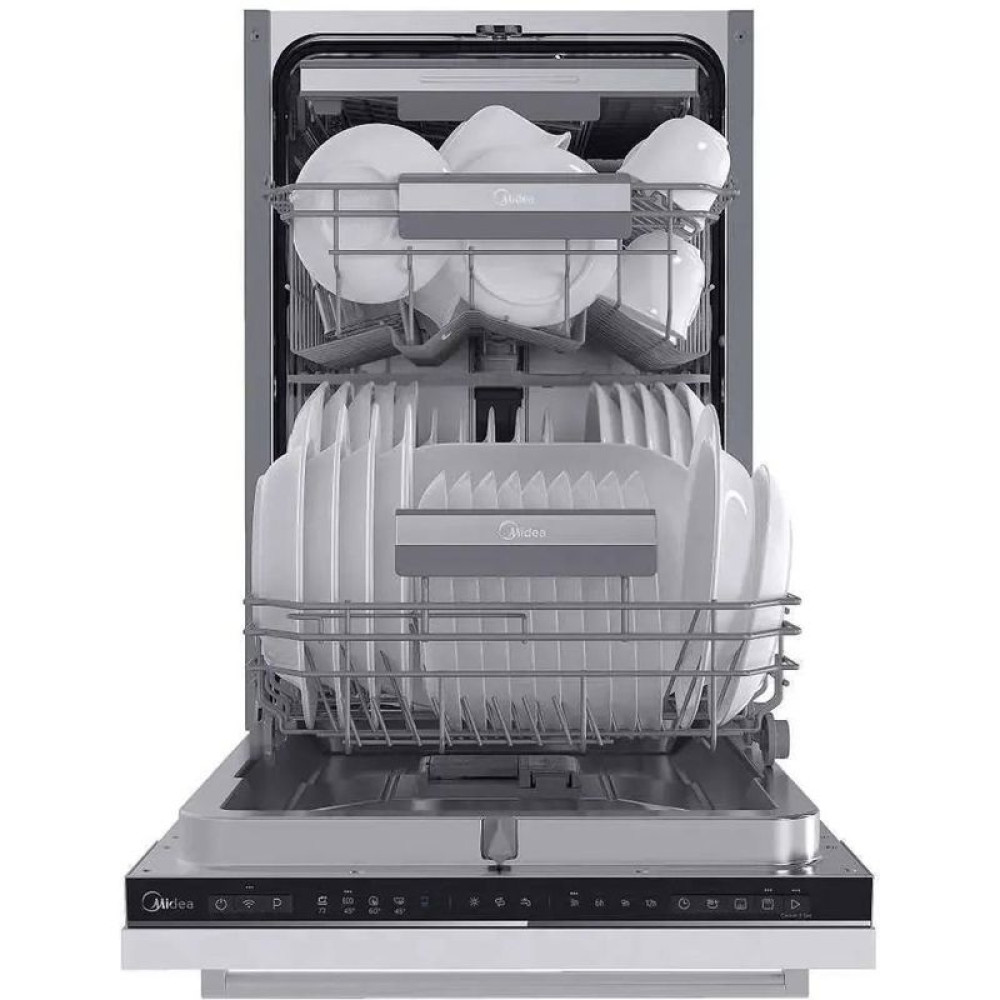 Встраиваемая посудомоечная машина Midea/ Встраиваемая ПММ, 45 см, 10 компл., 3 корзины, 3-я корзина Infinity, А++/A/A, Электронное управление, LED индикация, 5+4 программ, функция доп. сушки (Extra Drying), конденсационная сушка, Отложенный старт: 3/6/9/1