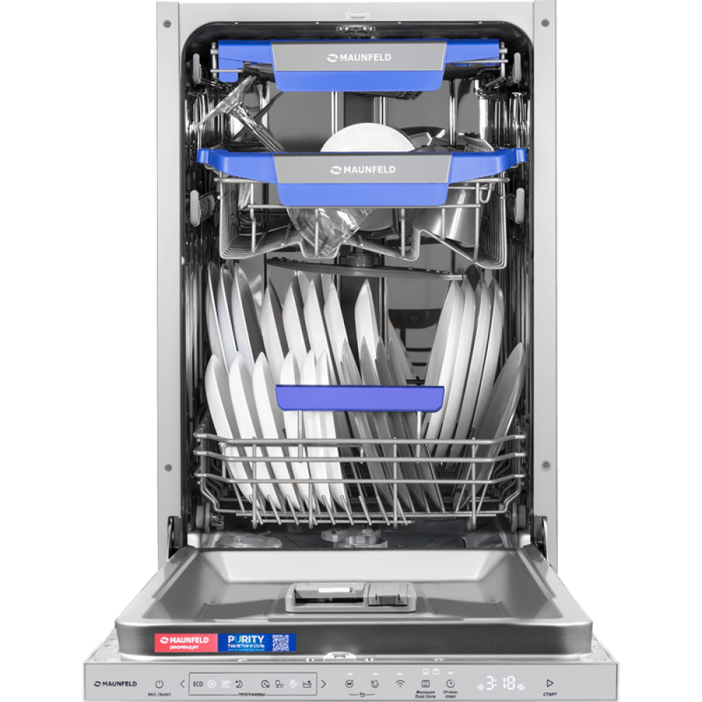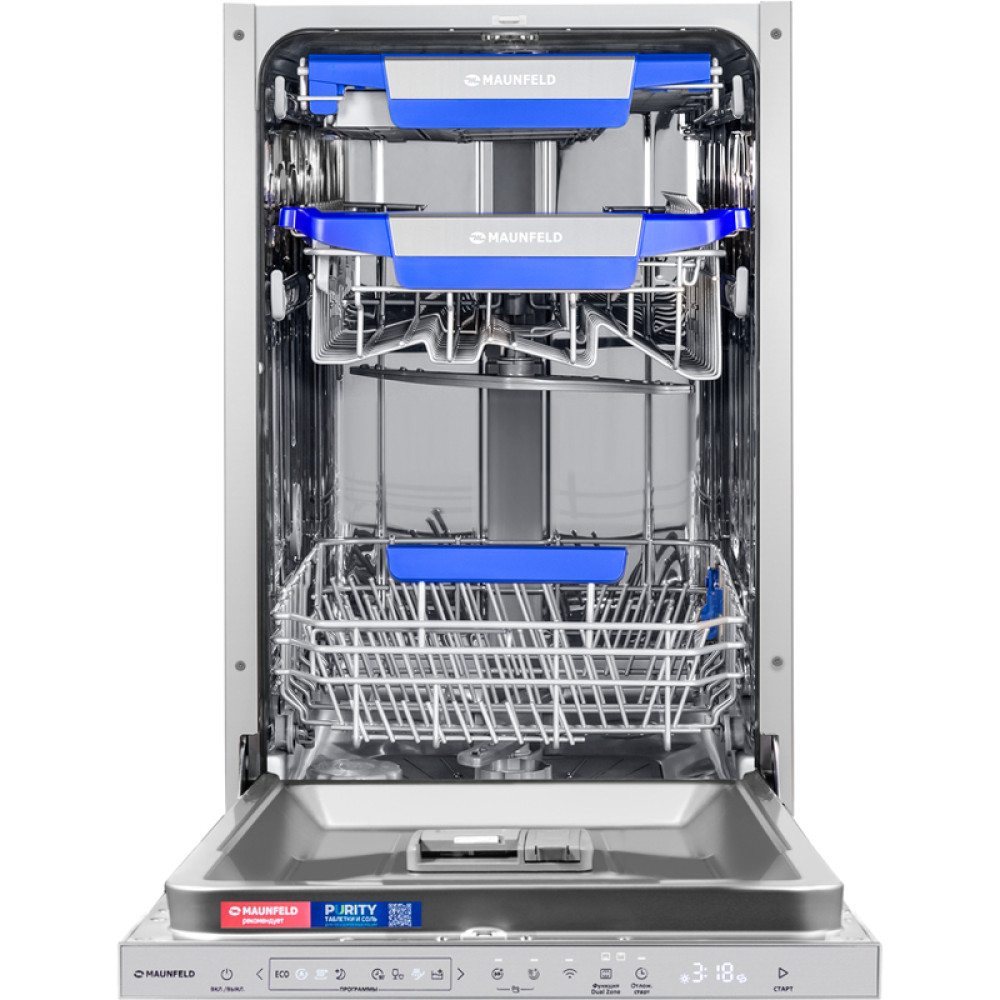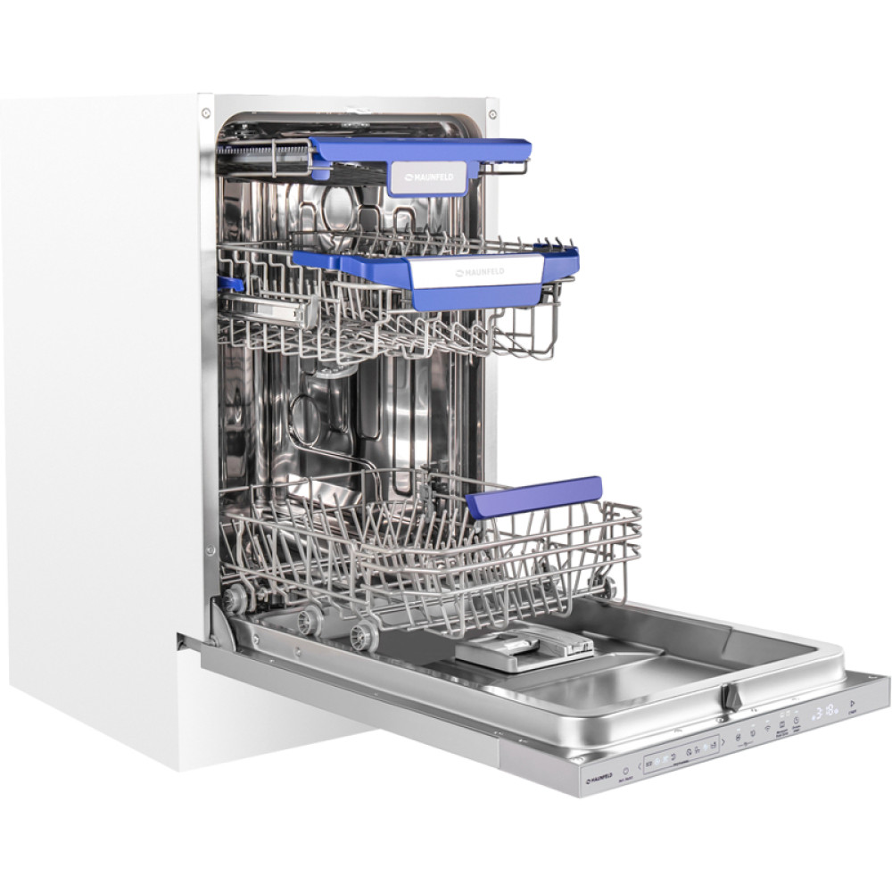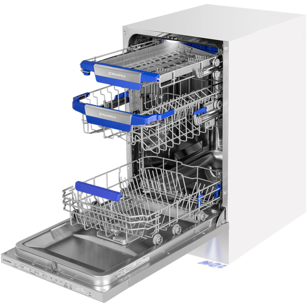 Встраиваемая посудомоечная машина/ Посудомоечная машина, Встраиваемая, 45 см, 3 корзины, 10 комплектов, 7 программ, внутренняя LED-подсветка, проекция таймера на пол, автоматическое открытие дверцы, дисплей, аквастоп, таймер, инверторный двигатель