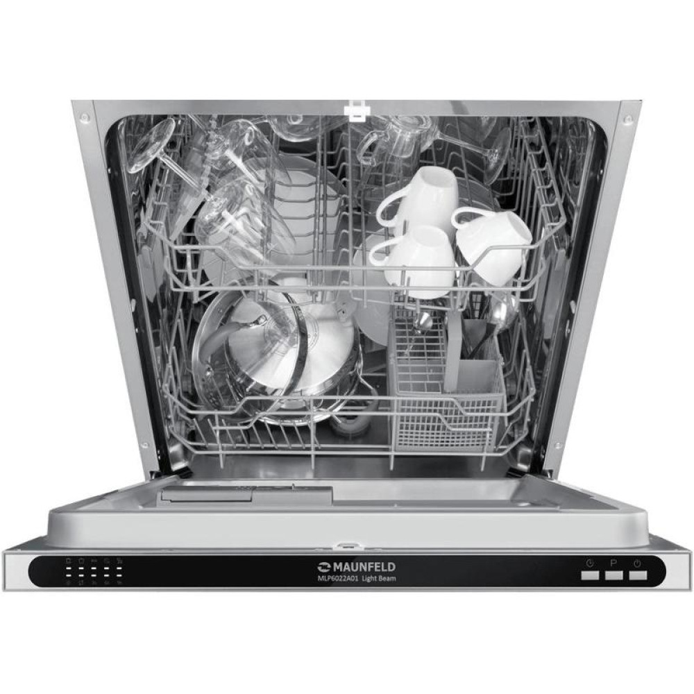 Встраиваемая посудомоечная машина/ Встраиваемая посудомоечная машина MLP6022A01 Light Beam Посудомоечная машина, Встраиваемая, 60 см, 12 комплектов, 5 программ, конденсационная сушка, звуковой сигнал, отсрочка старта, электронное управление, уровень шума