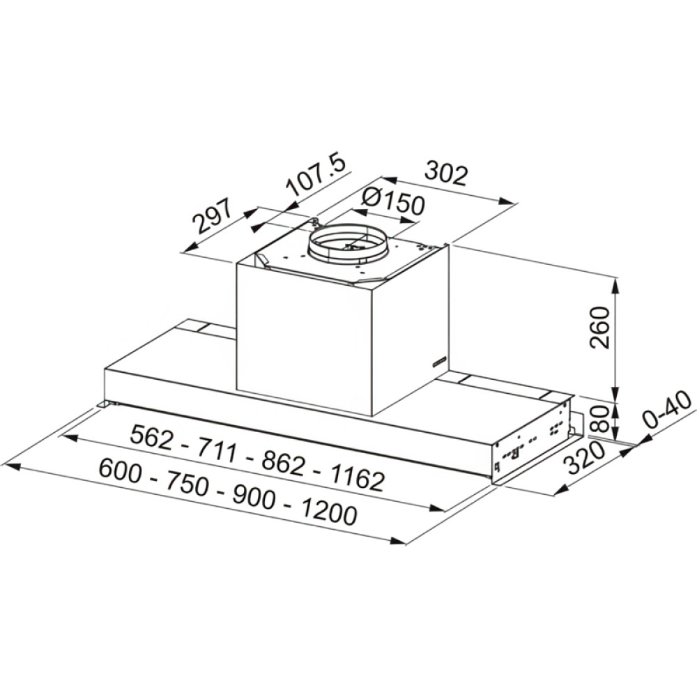 Встраиваемая в шкаф вытяжка Faber/ BETTER, IN-NOVA ZERO DRIP LITE A60 BK, полновстраиваемая, ширина 60 см, 710 м3/ч, сенсорное управление, 49дБ, LED освещение, черный матовый/тонированное стекло