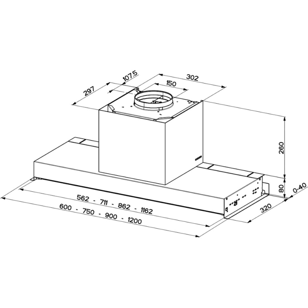 Встраиваемая в шкаф вытяжка Faber/ BETTER, IN-NOVA ZERO DRIP LITE A90, полновстраиваемая, ширина 90 см, 710 м3/ч, сенсорное управление, 49дБ, LED освещение, нержавеющая сталь/белое стекло