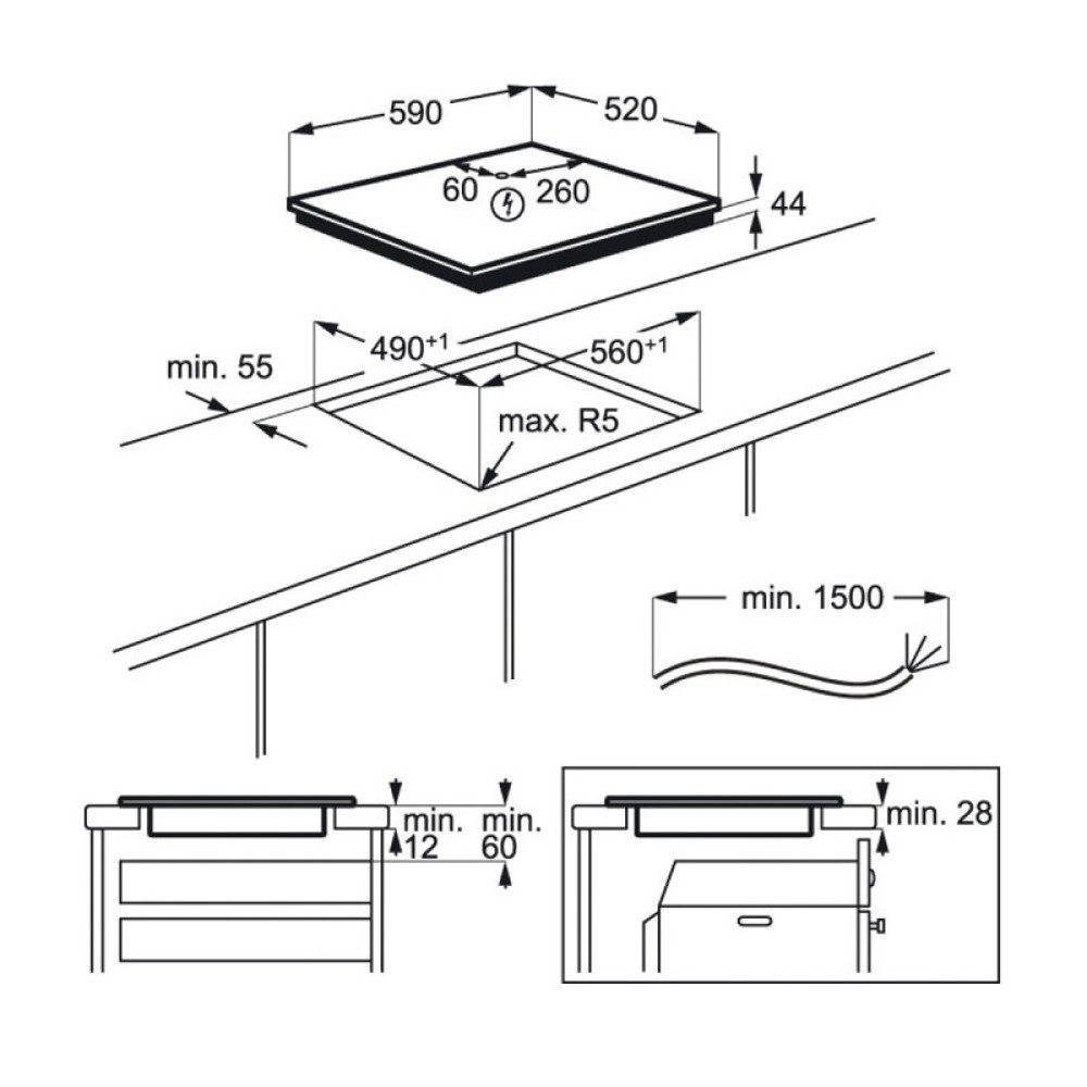 Встраиваемая варочная панель ELECTROLUX/ Встраиваемая варочная панель ELECTROLUX EIV644 индукционная на 4 конфорки, cтеклокерамика, мощность: 7200 Вт, независимая установка, размеры (ШхГ): 59x52 см