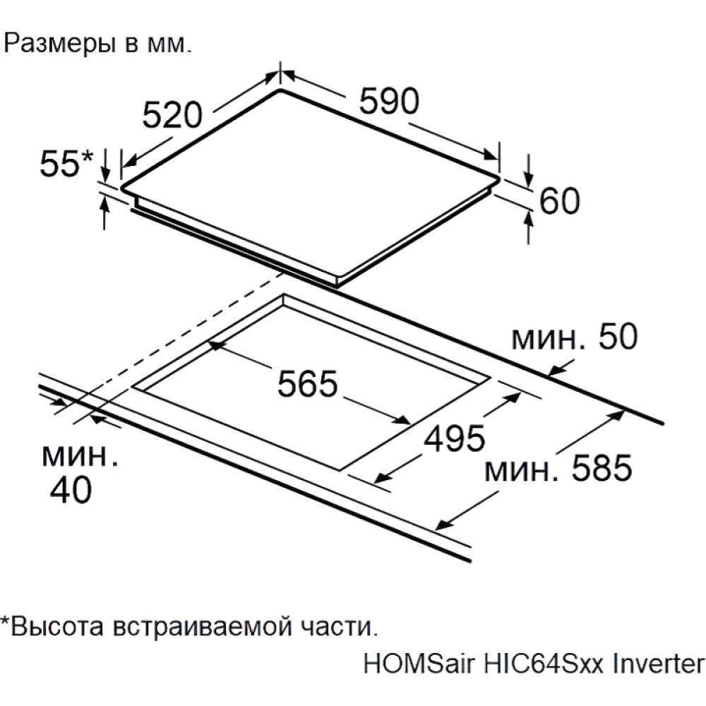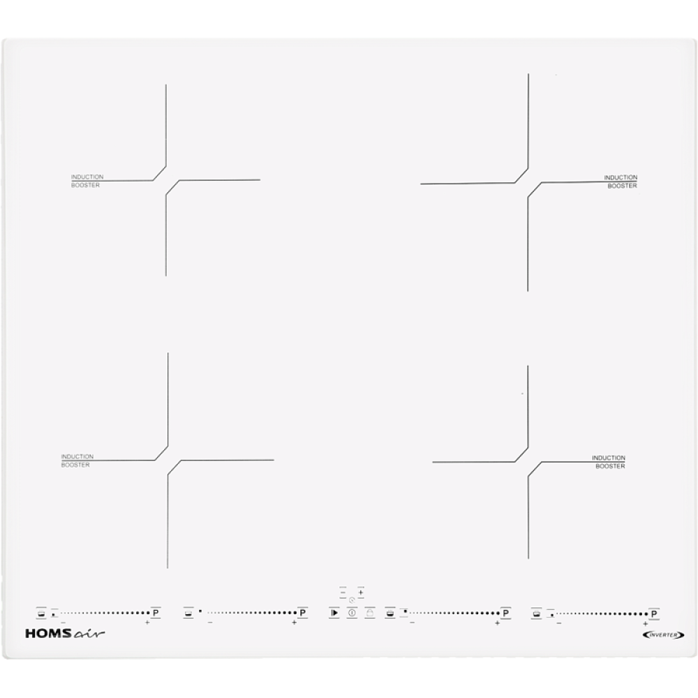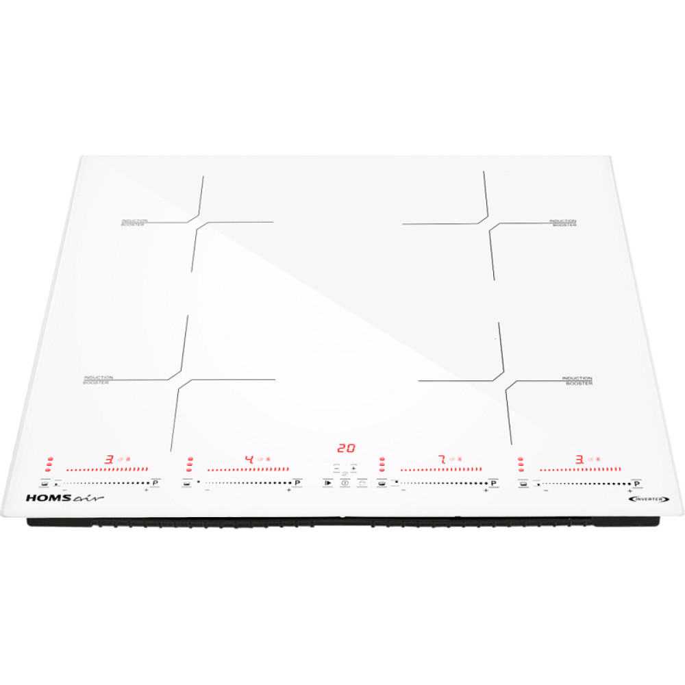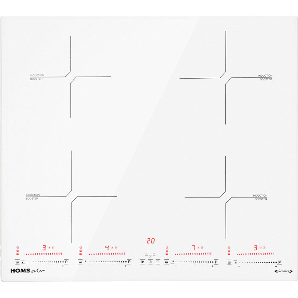 Встраиваемая варочная панель HOMSAir/ Индукционная варочная панель, 60 см, 4 конфорки, мощность конфорок 2000, 2000, 1200, 1200 Вт, сенсорное управление, бустер, автоматическое выключение, 9 уровней мощности, блокировка панели, таймер, белый цвет