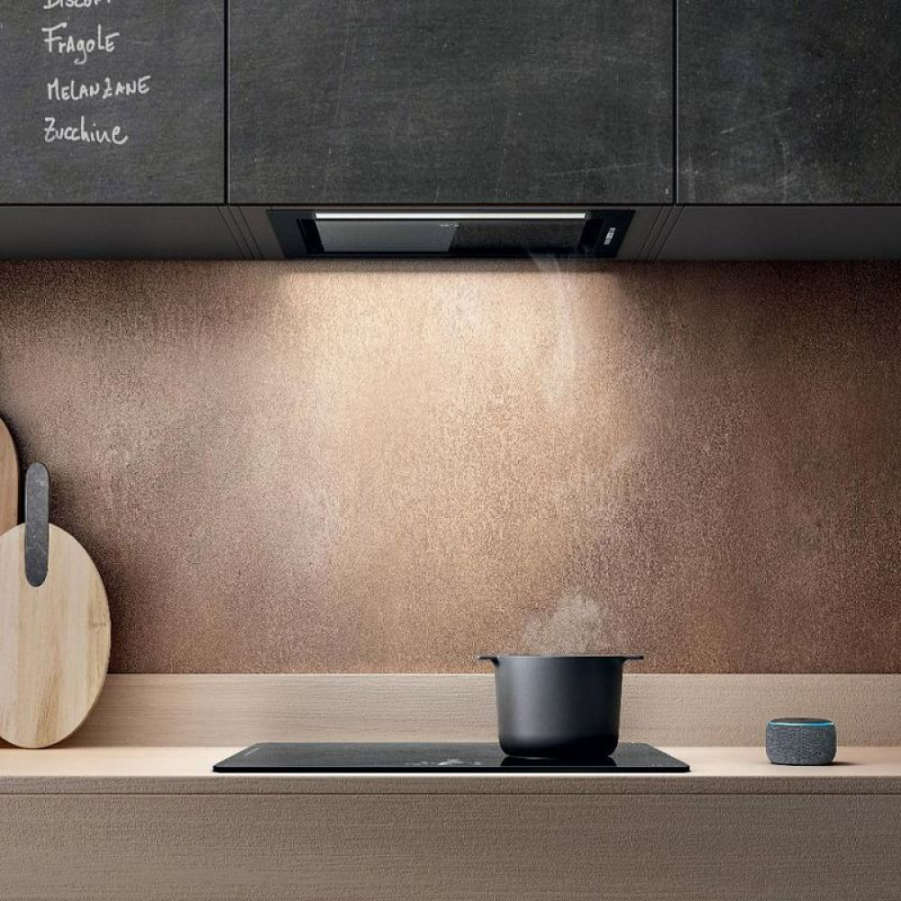 ELICA HIDDEN ADV PLUS @ BLGL/A/52 — стильная встраиваемая вытяжка черного цвета с размерами 51.4 см в ширину, 33.9 см в высоту и 28.2 см в глубину. Компактная конструкция позволяет легко интегрировать устройство в подвесной шкаф, сохраняя эстетику кухонного интерьера.