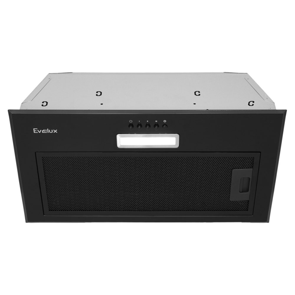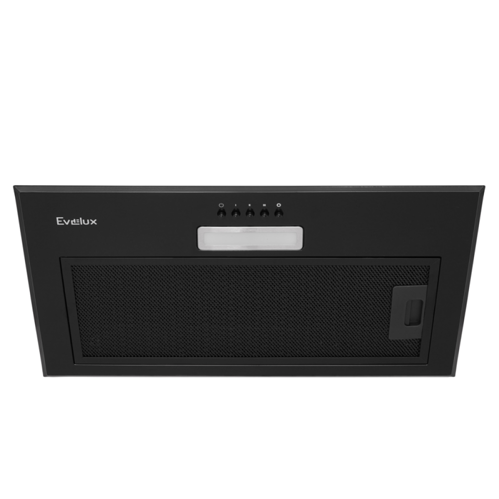 Встраиваемая вытяжка EVELUX, High-Tech, 60 см, 3 скорости, макс. Производительность 750 м3/ч, обратный клапан, LED подсветка, механическое управление, угольный фильтр ECFA 2122, цвет черный